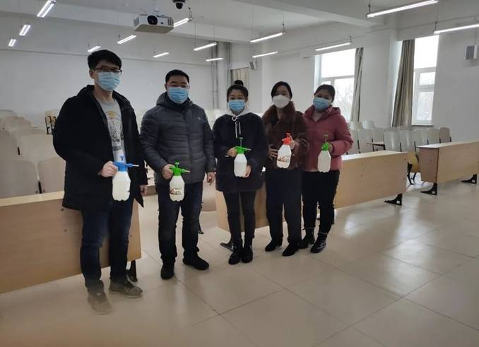 2021年春季学期学生开学返校工作方案》的通知要求,增强学生的疫情防控意识,进一步加强教室和实验室管理,营造健康、卫生、安全的生活和学习环境,2021年3月3日管理学院教科办教师和教师代表在徐光副院长的组织带领下,对学院教室和实验室进行全面消杀。