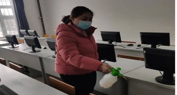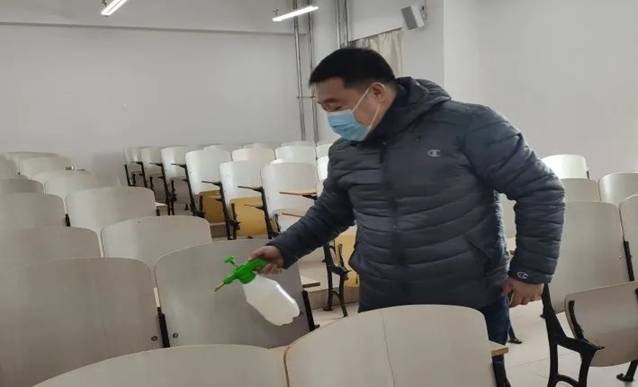 为了确保学生们返校后上课环境安全,徐光副院长带领教师们对教室进行防疫消杀并开展了详细的安全检查,对每间教室的地面和各个角落进行彻底的消毒,打开窗户通风换气,以保证消毒工作的到位和保障教室环境安全。
