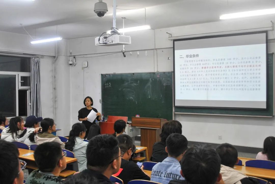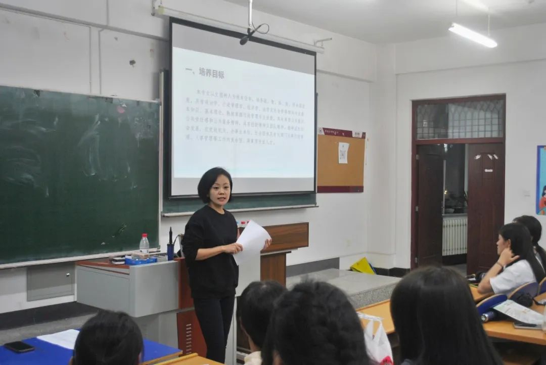 首先,宋丽丽为新生们介绍了行政管理专业的专业优势,该专业培养的是具备公共部门和组织管理技能的专业人才。随着政府、非营利组织和私营企业的增多,对行政管理专业人才的需求也在不断增加。其次,宋老师详细讲解了行政管理专业培养方案及相关课程安排,所有课程的设置均注重培养学生的管理和领导技能,包括决策制定、团队协作、问题解决和沟通能力等。这些技能在各种组织和职业中都非常重要。毕业于行政管理专业的学生通常有广泛的就业机会,可以进入政府部门、公共政策研究机构、非营利组织、企业管理、咨询公司等不同领域。宋老师还指出,行政管理专业强调公共利益和社会责任感,旨在培养学生为社会服务和改善社会问题的使命感,这对那些希望影响社会变革的人来说是一项重要的优势。最后,宋老师与学生针对考研、保研、选课等问题进行了详细的交流与探讨。