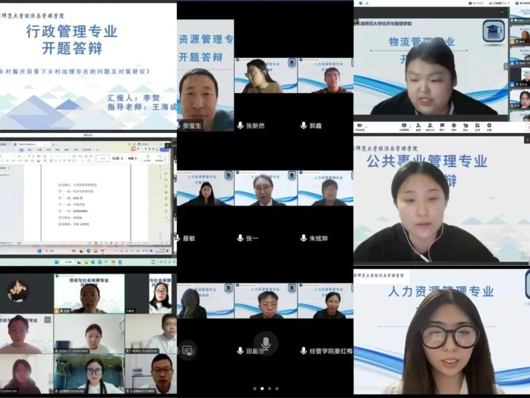 本次论文开题答辩共826名学生。分为10个专业答辩组,22个答辩小组,每组设至少3名答辩教师,采用线上答辩的方式。答辩前,各组答辩老师明确了答辩的环节与时间分配,并强调了答辩过程中的答辩纪律。期间,负责记录和整理的答辩助理检查好记录设备,引导答辩同学按序准备答辩材料,并在答辩过程中详细地记录每一位同学的答辩内容,确保开题答辩的相关材料准确规范。