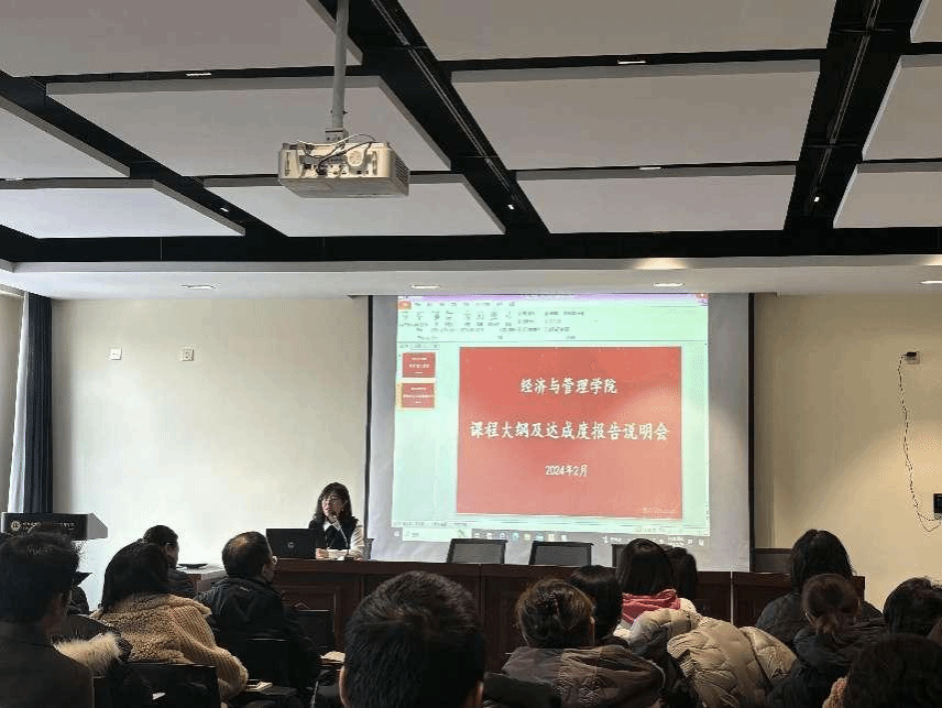 会议第二部分由祁凯向全院教师进行课程大纲及目标达成度专题辅导。为迎接新一轮本科教育教学审核评估,规范课程建设与管理,祁凯以自己课程为例详细阐述课程大纲及达成度报告的各项内容。首先,针对课程大纲中的课程目标、课程教学内容进行详细说明,重点强调应当在课程教学内容设置中包含重难点及课程思政融合点,在课程教学评价方式上要重视过程性评价,清晰说明考核方式、过程性评价的比例、评价内容与标准、实施方式等。其次,详细解读课程目标达成度评价报告,并针对报告中的各项内容进行具体说明,为教师提供思路和参考,为审核评估工作做好充分准备。