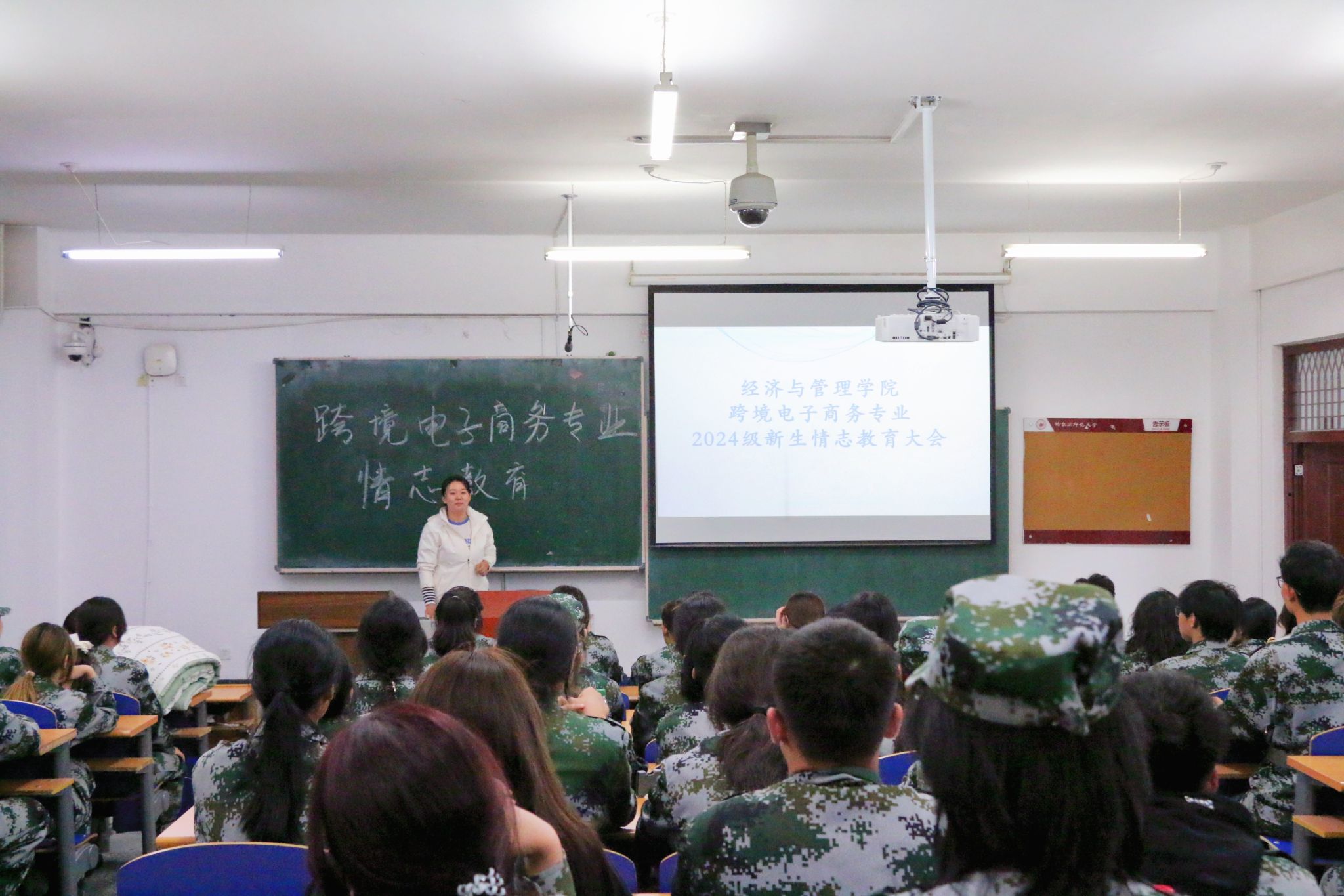 于崇师楼A201室召开了2024级跨境电子商务专业新生专业情志教育大会。本次大会由跨境电子商务专业负责人高阳老师、跨境电子商务专业教研室主任田瑶老师主讲,全体2024级跨境电子商务专业新生参会。