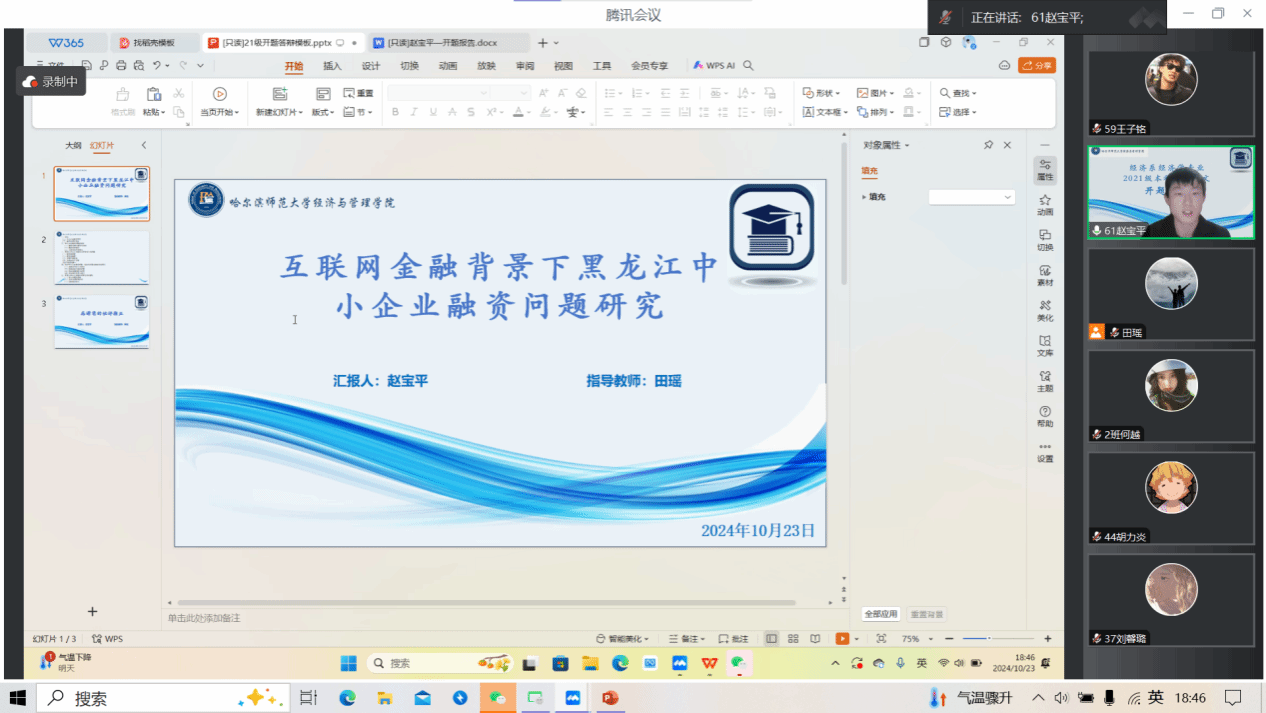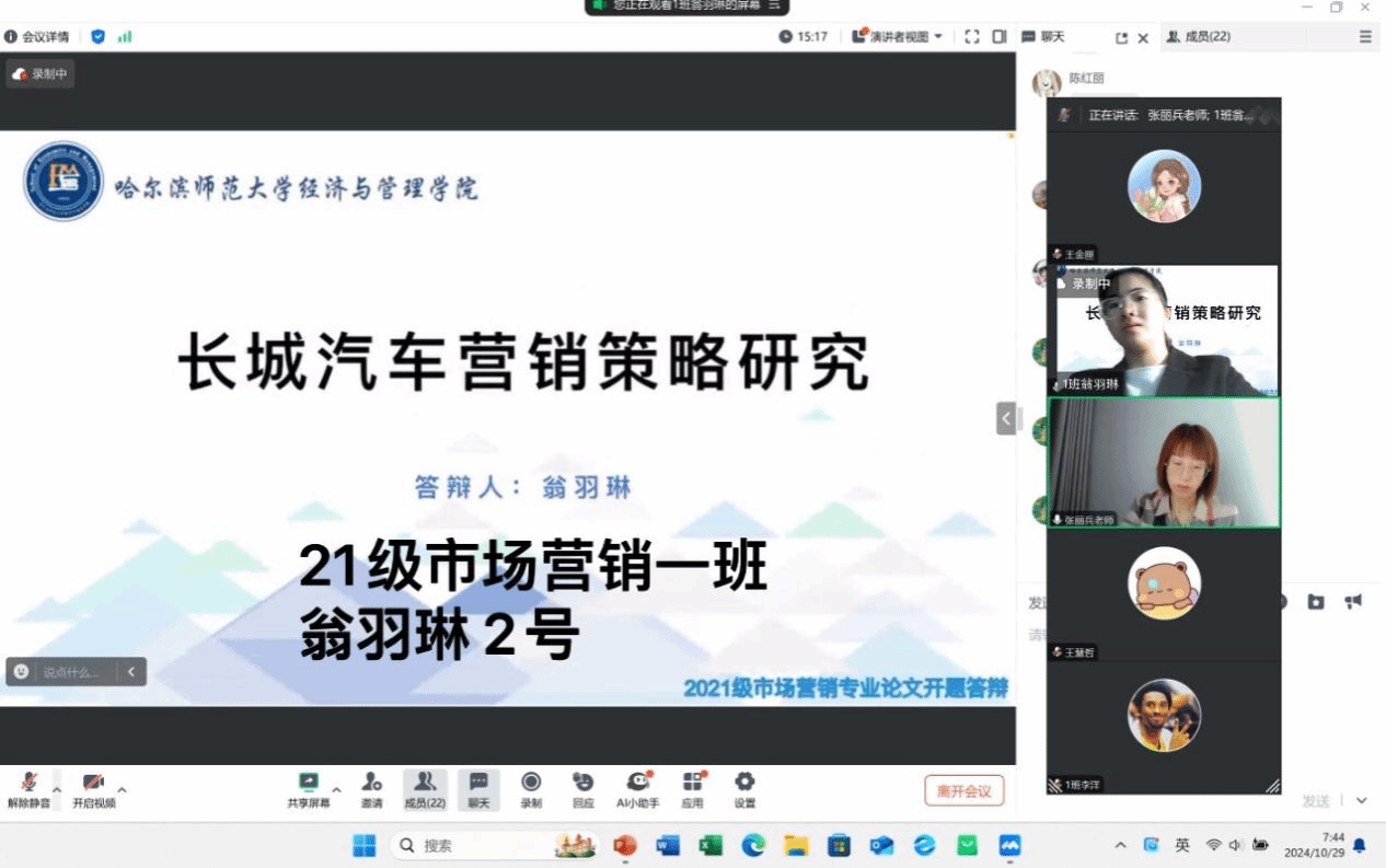 经过紧张有序的答辩,本科毕业论文开题答辩会圆满结束。总体来看,同学们的开题报告准备较为充分,研究思路较为清晰,研究方法具有一定的科学性和可行性。多数学生在答辩过程中能够清晰阐述自己的研究思路,逻辑较为严密。对研究问题进行了初步的分析和拆解,提出了合理的研究步骤和计划。
