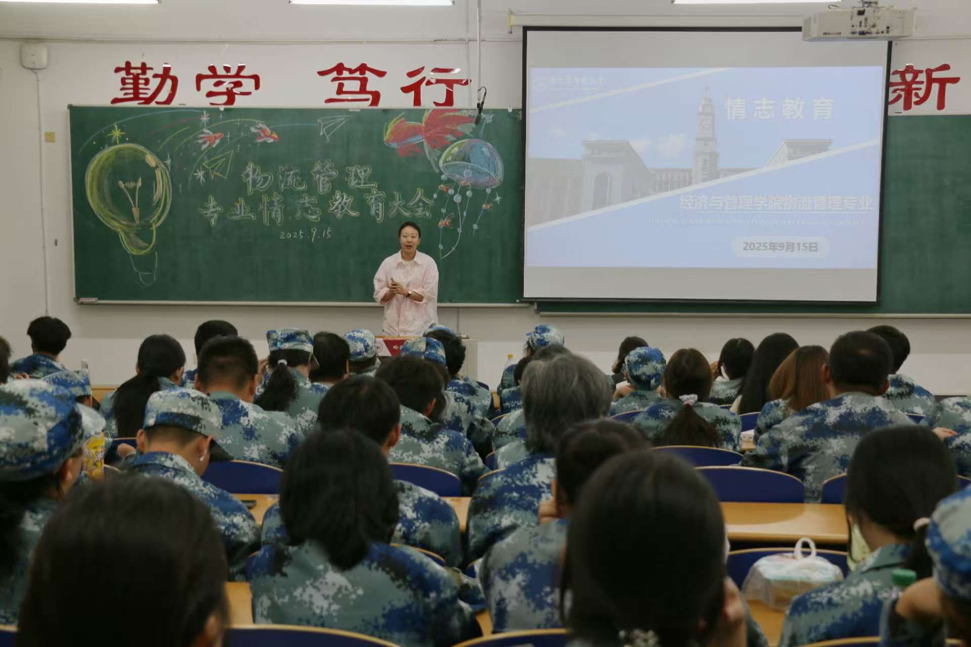 于9月15日18:30在崇师楼C103召开2025级物流管理专业新生情志教育大会。本次大会由副院长祁凯、物流管理系主任郭淑红主讲,2025级物流管理专业全体新生参加。