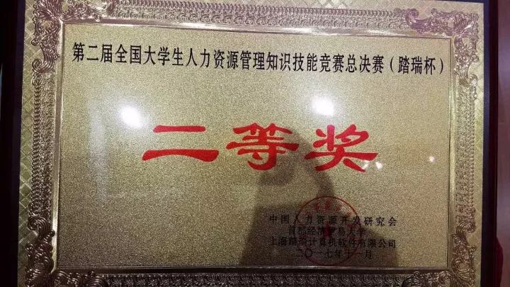 2017年11月4日-5日,工商管理系人力资源专业教师牟向阳、张宝生,带领2014级人力资源管理专业学生焦自强、姜京宇、孙田田、李茹香参加了在首都经济贸易大学举行的第二届全国大学生人力资源管理知识技能竞赛总决赛(踏瑞杯),与来自全国七个赛区236个高校预赛决出的73支队伍、近500余名师生进行最终角逐,喜获全国二等奖。