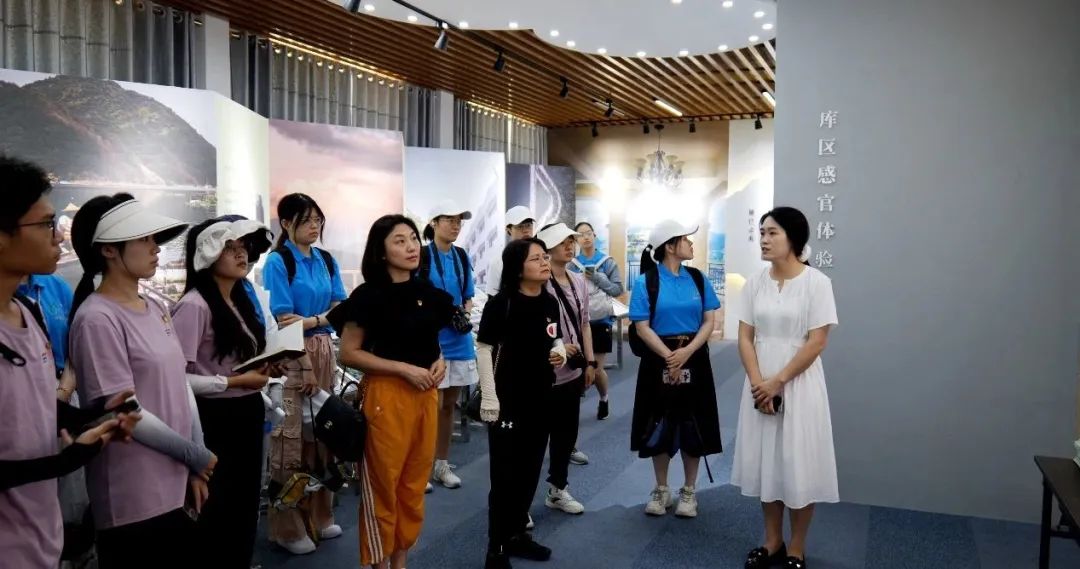 实践团在雄江镇组织委员兰静的带领下在闽台(雄江)创意文化馆进行了参观调研。雄江镇梅雄村素有闽江之畔“水上布达拉宫”的美称,并在2020年列入省乡村振兴实绩突出村、省美丽休闲乡村。近年来,该村立足雄江山水资源特色,先后实施库区旅游村、库区基础设施配套项目,整合了闽台两岸青年文化创意产业入驻,将研学与旅游相结合,逐步孕育出一条“田园变公园、产品变商品”“农居变景点、农村变景区”的乡村振兴特色之路,吸引青年学子及周边游客来此驻足研学度假。其中,梅雄村饭宅研学基地位于“世界稀有,中国第一”国家级黄楮林自然保护区的万绿丛中,极具乡村历史特色,古韵浓郁,底蕴深厚,是一处现实版的桃源胜地。