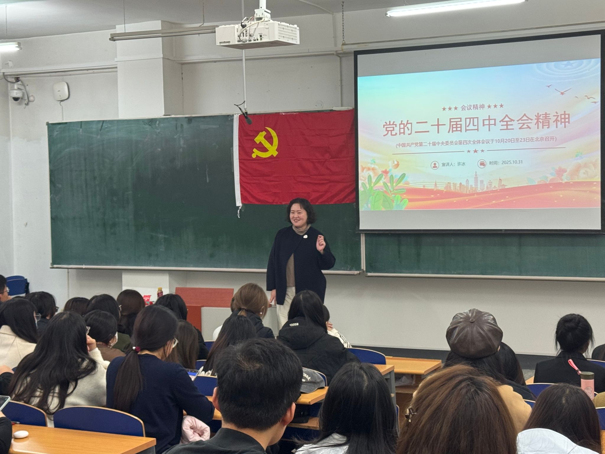 于10月31日晚18:00在崇师楼C201组织开展2025年下半年党员发展对象专题培训。本次培训由党委党校教育培训兼职教师、物流管理系副主任、物流管理系教师党支部副书记许冰副教授主讲,培训主题为党的二十届四中全会精神,全体2025年下半年党员发展对象参加学习。