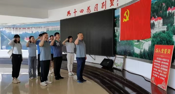 在兴十四村村史展览馆,大家全方位、多侧面了解了兴十四村的发展史,兴十四村是1956年接收安置山东移民建立起来的“移民新村”,在村党总支书记付华廷的带领下,经过几十年的艰苦奋斗,兴十四人把原来荒原上的“三无村”“三靠村”,发展成为现在幅员4.2万亩,总资产23亿元,人均年收入7.6万元的兴十四村,被誉为“龙江第一村”,成为我国农业战线的一面旗帜。参观中,大家切实感受到了兴十四村党组织带领村民艰苦奋斗、取得卓越成绩的光辉历程。在一组组数据、一张张图片、一个个实物、一块块奖牌面前,大家不禁动容赞叹。参观结束,全体考察人员怀着激动的心情,面对鲜艳的党旗,在学院党委书记邓铁男领誓下,庄严的重温入党誓词。