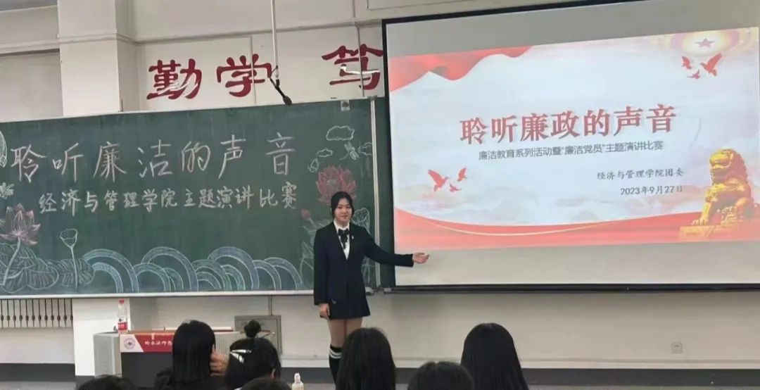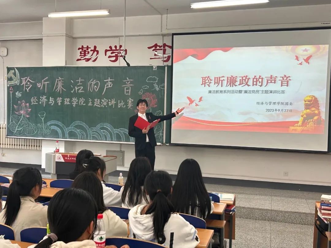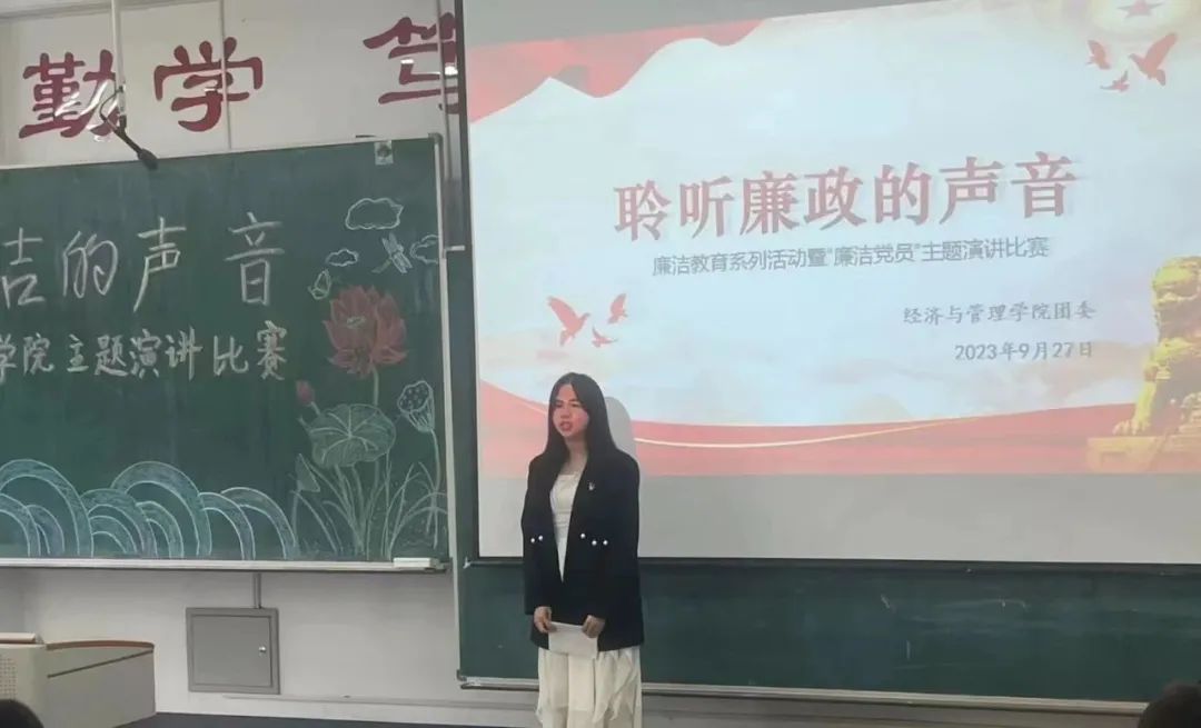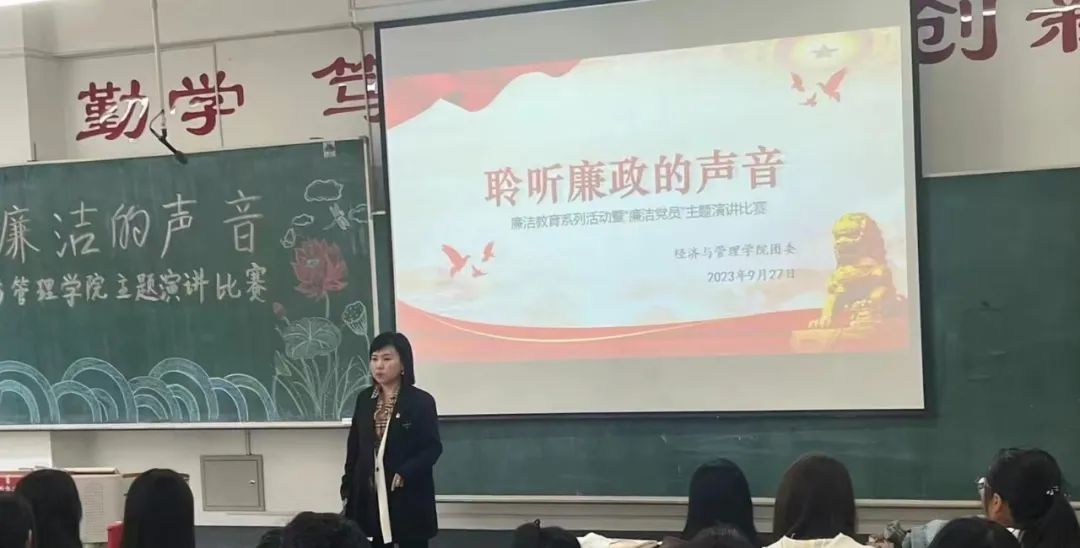 于9月27日下午在崇师楼C101举办了“聆听廉洁的声音”主题演讲比赛。学院团委书记陈凤、学院各党支部党员代表和部分23级新生参与此次活动。