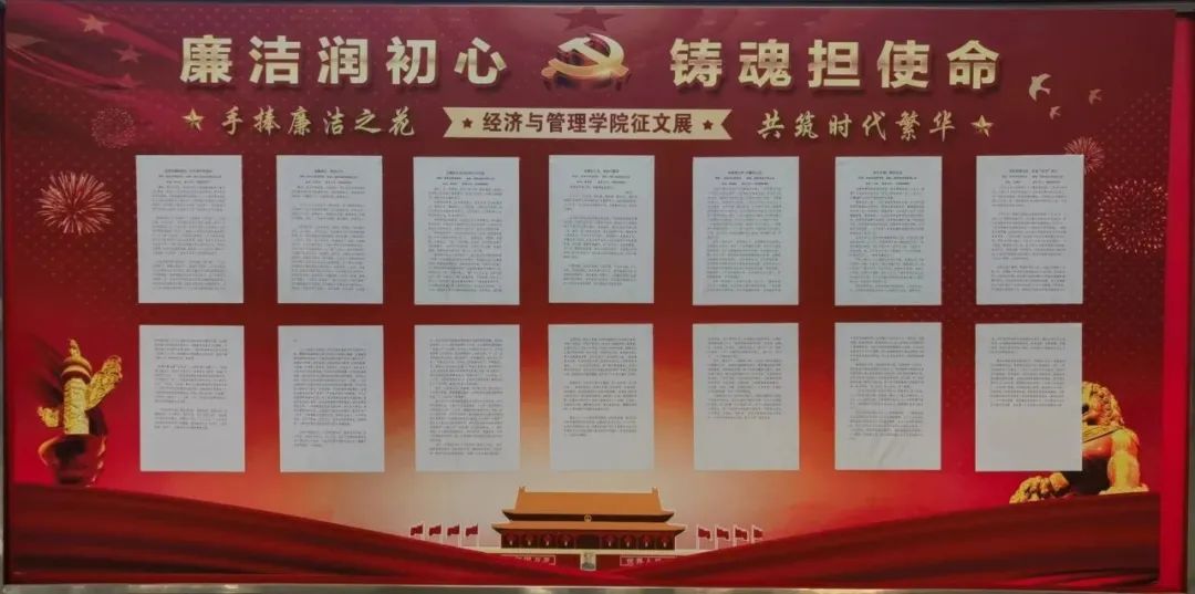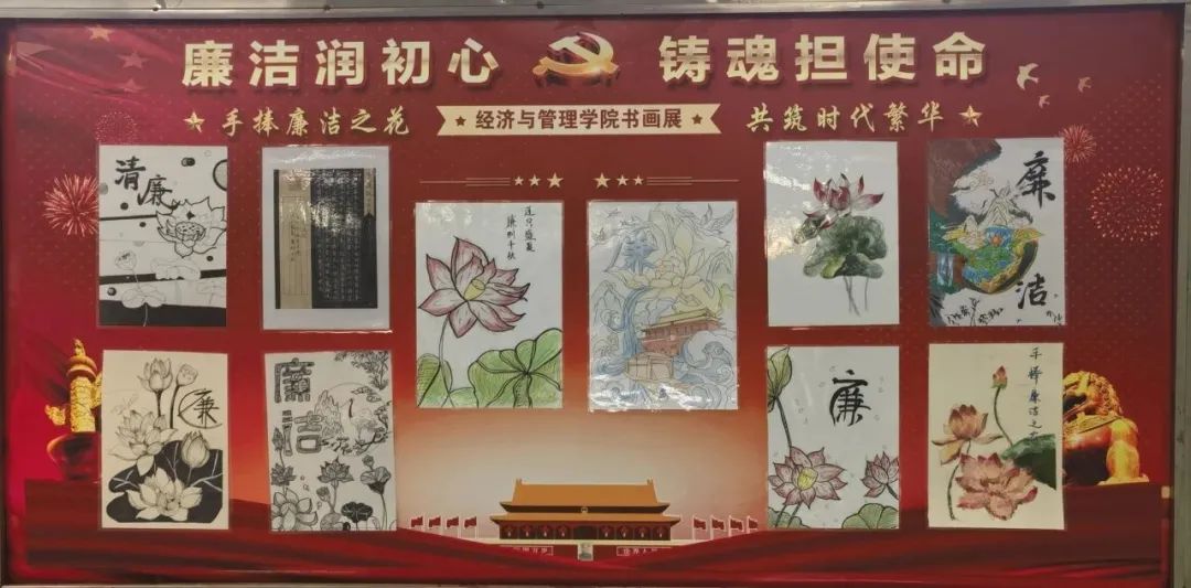 于2023年6月25日至9月10日面向全体学生党员开展“手捧廉洁之花,共筑时代繁华”主题书画征文展活动,通过线上征集、线下评选的方式,选出部分优秀作品进行展览。