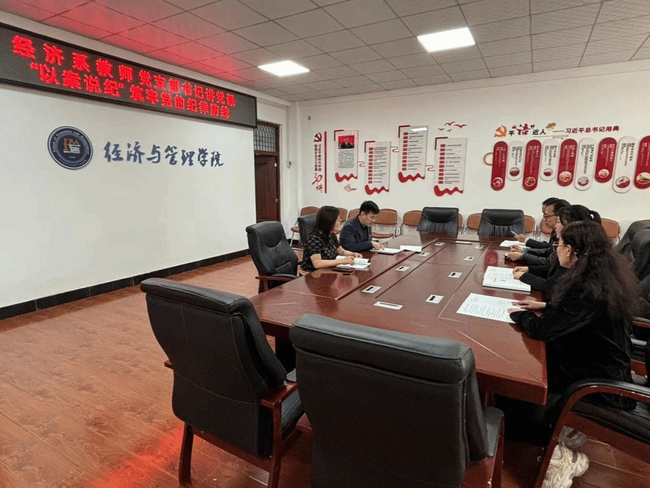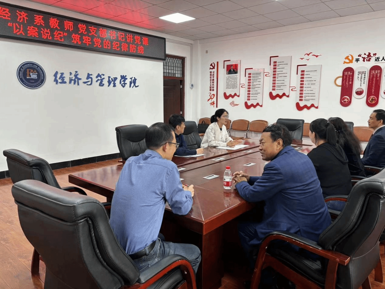 经济系教师党支部于2024年5月15日崇师楼A208室开展了党纪学习教育专题党课,本次党课由党支部书记刘生讲授,支部全体党员教师参加。