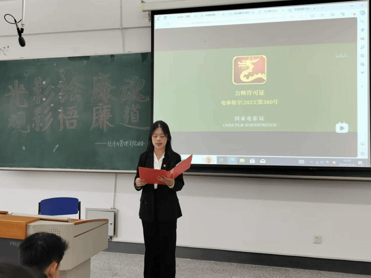 于10月16日在崇师楼A621举办“光影绘廉魂,观影悟廉道”主题观影活动,旨在通过电影这一生动的艺术形式,引导学院学子树立廉洁观念,激发践行廉洁的内生动力。学院团委书记陈凤,23、24级各专业学生代表共81人参与此次活动。