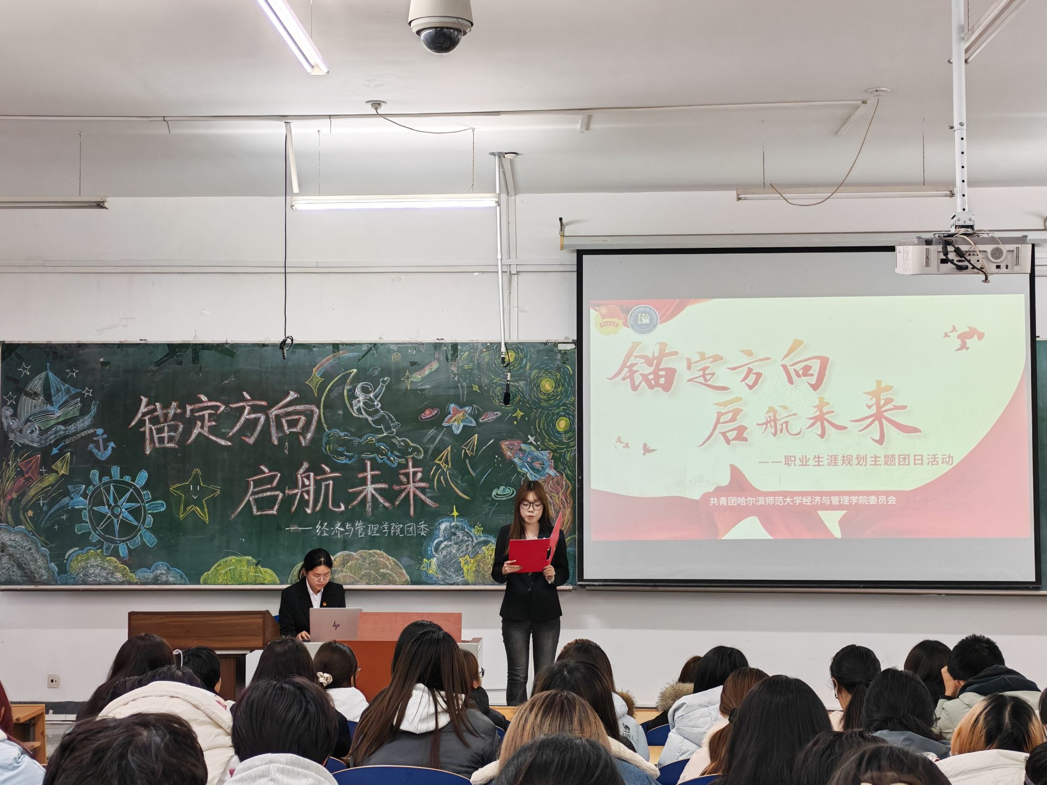 于2025年11月5日13:30在崇师楼D202举办“锚定方向 启航未来”职业生涯规划主题团日活动,学院团委书记陈凤、各专业代表共230名参加,活动由院团委干部曲妍熹主讲。