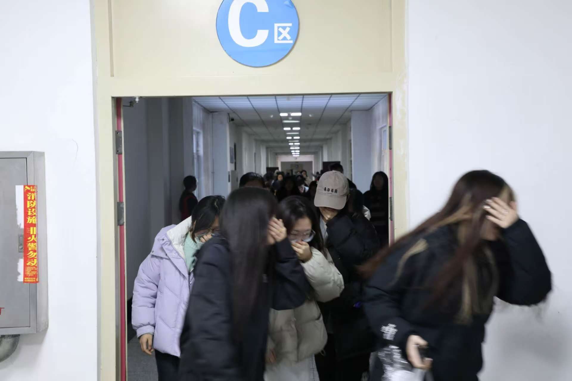 讲座结束后,开展应急疏散演练。消防疏散演练分为模拟火情、报警并启动学院应急预案及组织人员疏散三个阶段。消防疏散演练正式开始,现场工作人员认真负责疏散引导, 疏散组在楼层、楼梯口等关键位置引导,学生们按照预先制定的疏散路线,迅速撤离火警现场,撤离人员用手捂口鼻、弯腰低姿前进。撤离工作井然有序,全员抵达安全集合点,各部门班级迅速清点人数,确认无人员被困或受伤,情况同步上报指挥组。疏散演练活动取得了预期效果,真正实现了理论知识向实战能力的转化。