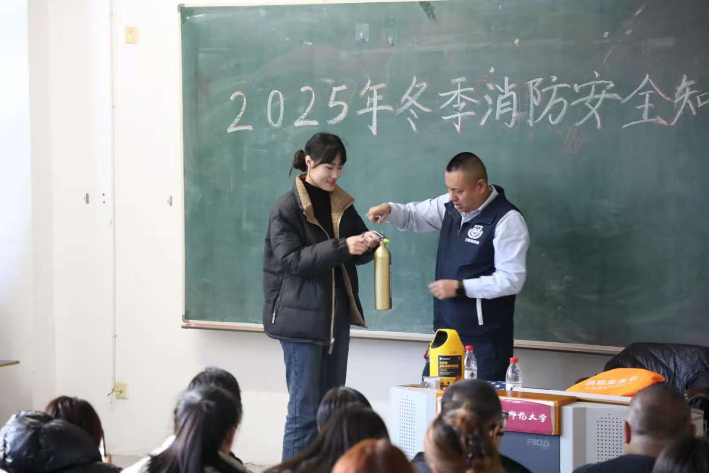 于崇师楼C204开展“知火情·速逃生”消防知识讲座及演练活动,本次活动邀请哈尔滨卫民安消防知识宣传中心主任姜言君担任主讲及演练总指挥,学院领导、老师以及各年级学生代表共120余人参与。
