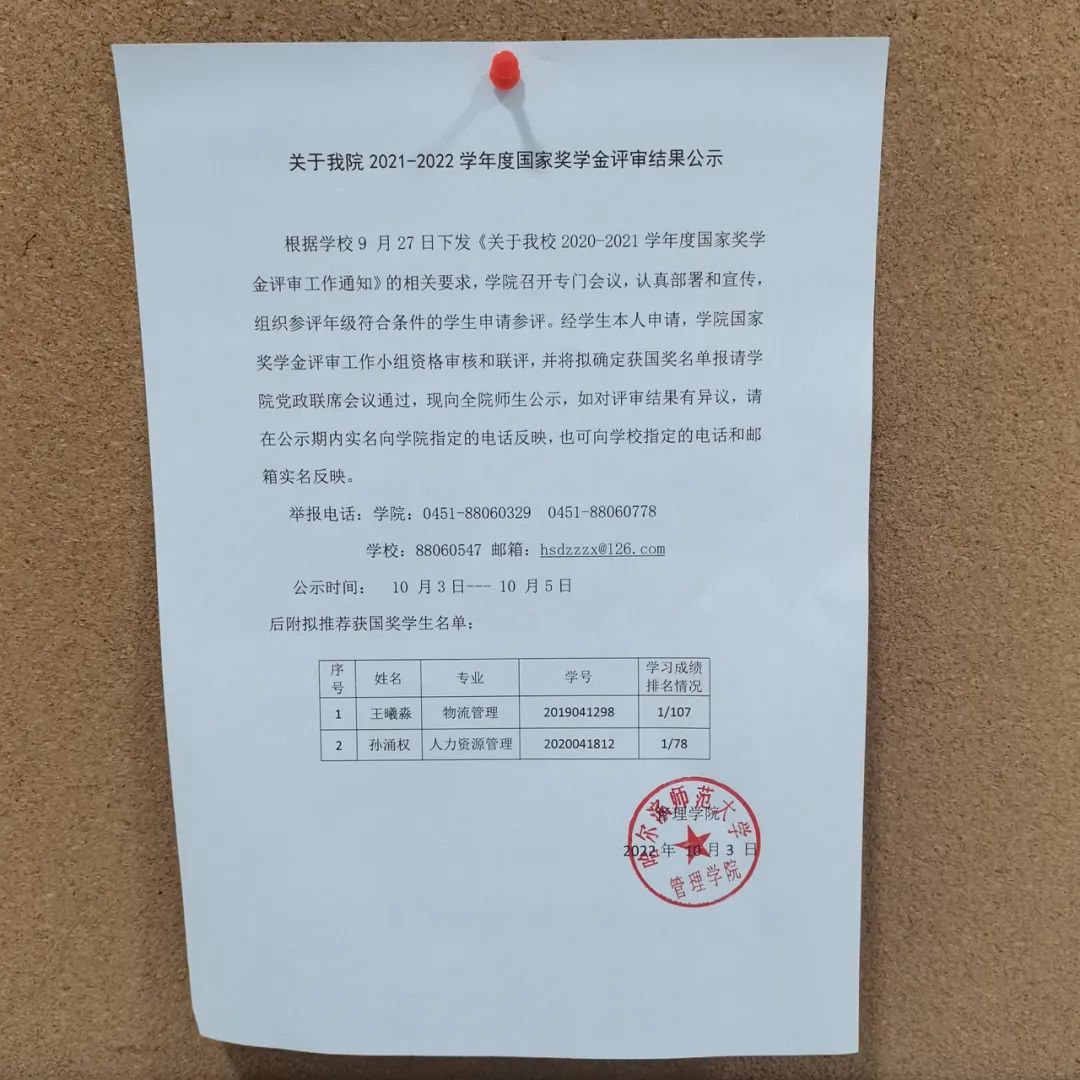 本次国家奖学金评审工作保持公平、公正的原则,严格按照学校相关规定选出两位候选人,圆满完成了2021-2022年度国家奖学金的评审工作,通过本次评审,学院加强对先进模范的宣传工作,为管理学院的同学们树立了优秀榜样,进一步激励小说狂人