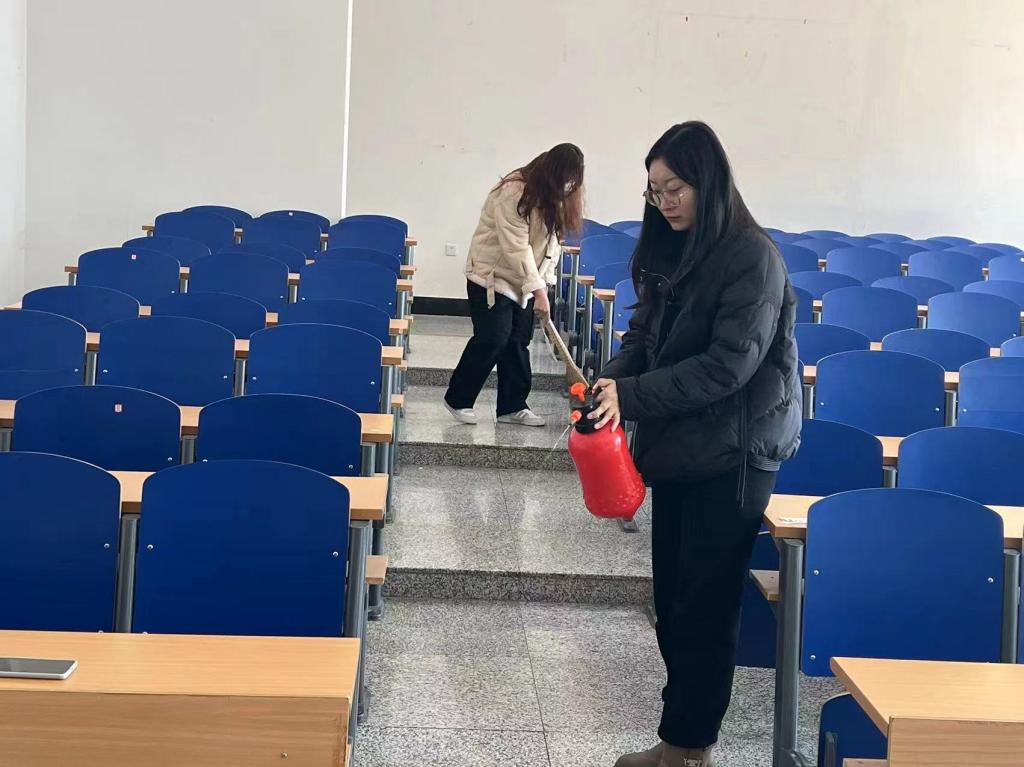 在25至26号这两天内,辅导员老师带领学生干部重点完成教室地面、桌面、窗台和黑板的清洁工作,并逐一完成了各个教室开窗通风和消毒消杀,同时组织同学们返校后第一时间进行了寝室清扫及内务整理。26号下午,小说狂人