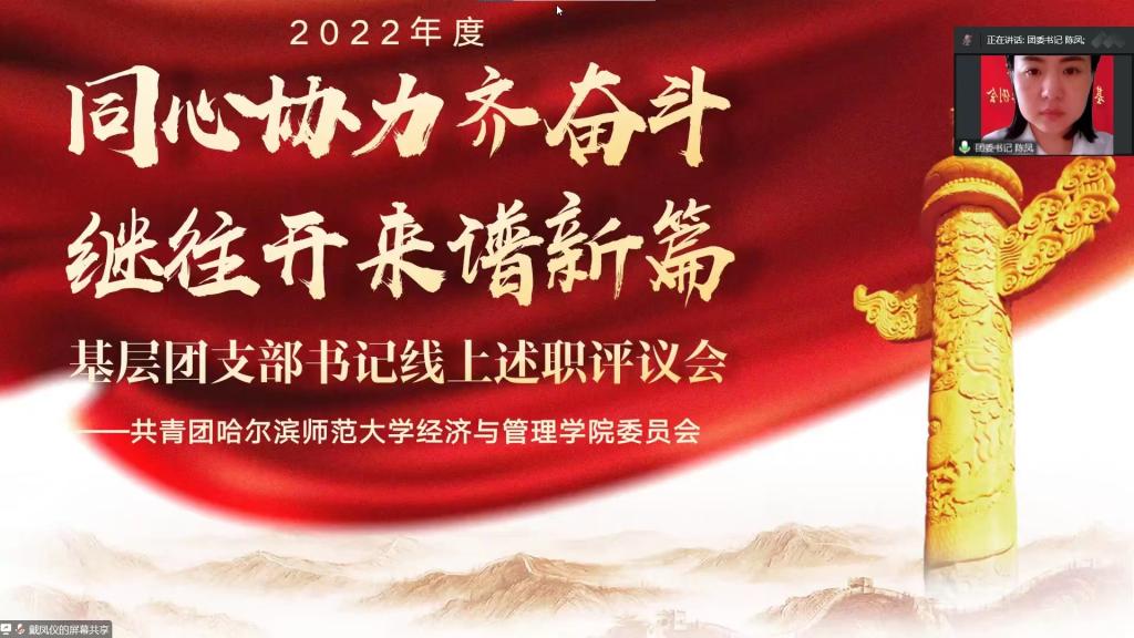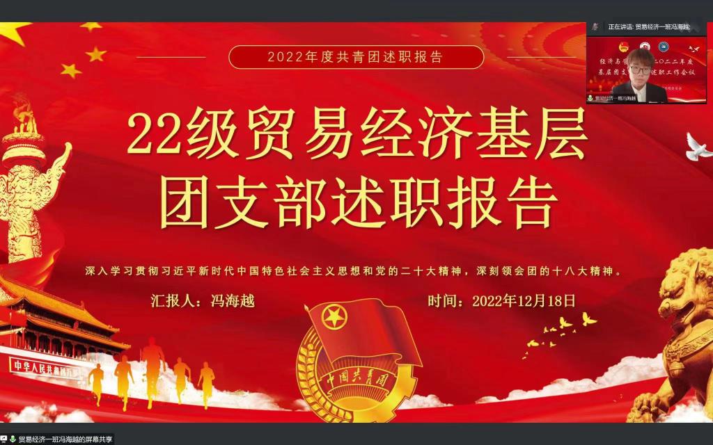 团委于2022年12月18日以线上会议的方式召开了2022年度基层团支部书记述职评议大会,学院团委书记陈凤出席,各班团支书参与本次会议。