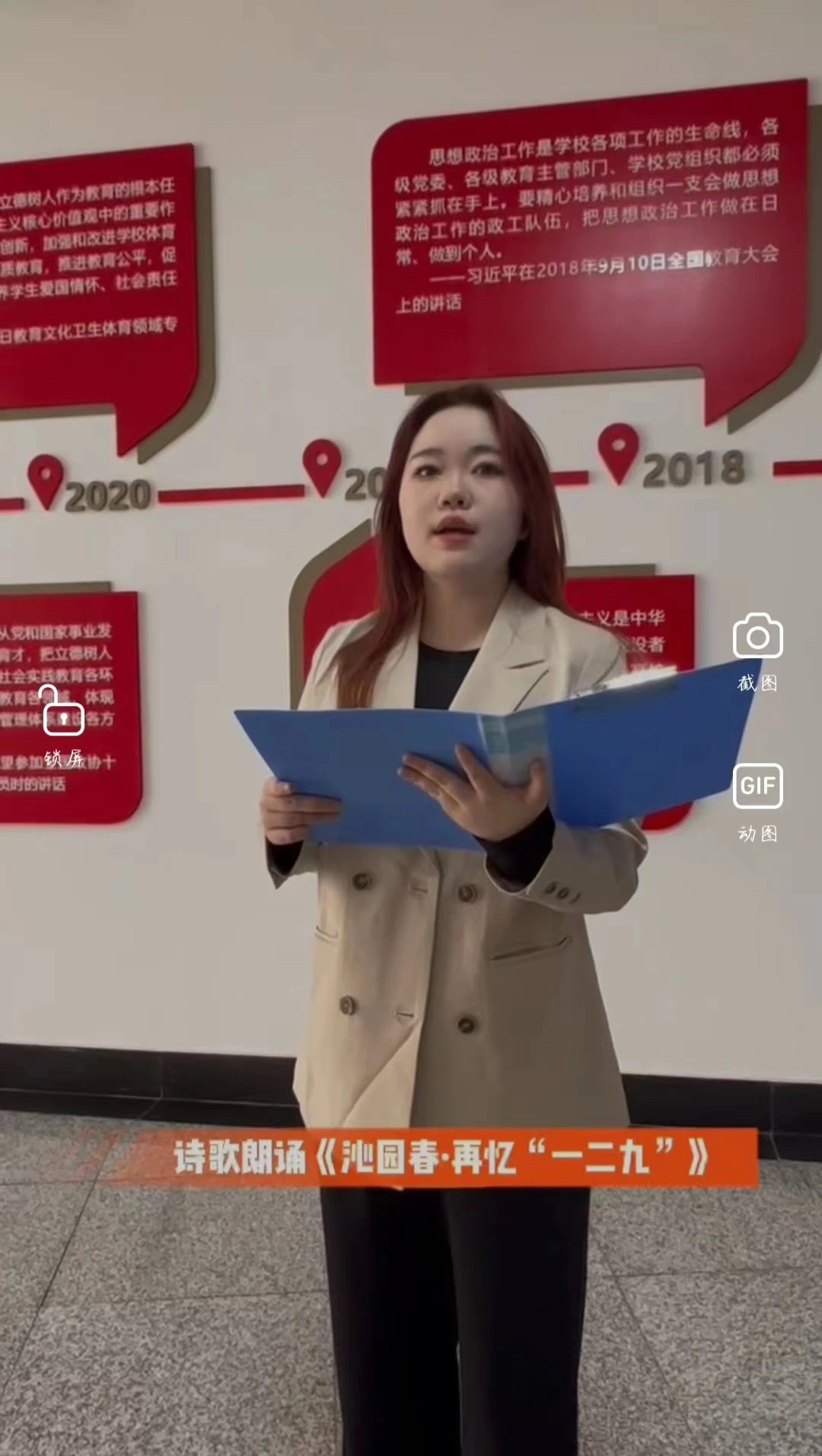 本次活动围绕“奋进:鲜红的旗帜”进行主题诵读,同学们围绕新中国成立以来在中国共产党坚强领导下所涌现出的各类红色诗歌作品进行诵读,其中不乏《沁园春·雪》、《祖国颂》、《长征》等脍炙人口的篇章,各位朗读者以激昂的语言和慷锵有力的声音重温红色经典,展现爱国主义情怀与青年的使命担当,用自己的真情实感感染了在场的每一位观众,表达了新时代青年以史为鉴、缅怀英烈、报效祖国的钢铁意志和坚定决心。