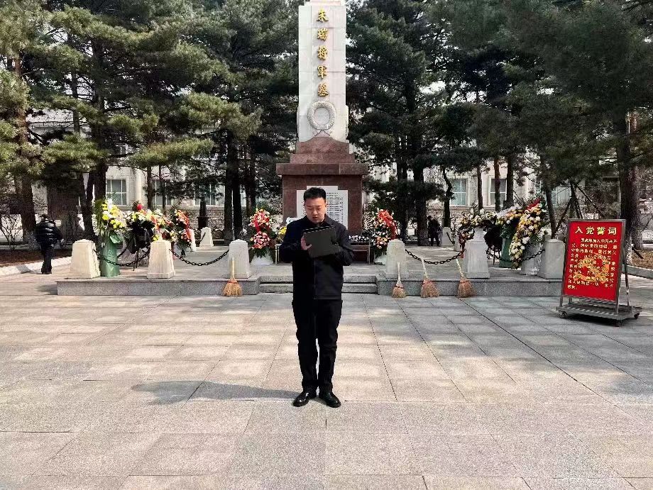 随后,全体师生来到汪雅臣将军纪念碑前,全体党员庄严举起右拳面向党旗,重温入党誓词,声音铿锵有力,彰显初心使命。