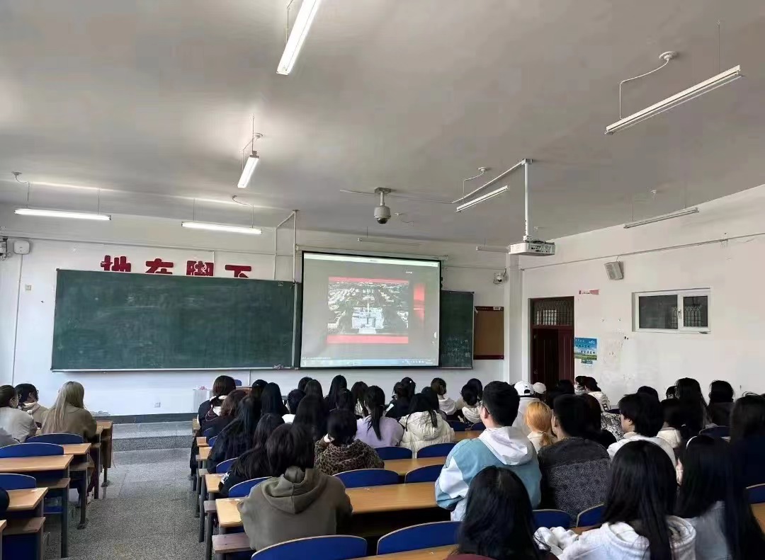 组织全体同学在2023年4月26日于崇师楼各教室一同观看了"记念五四运动104周年表彰大会"视频,掀起了向优秀榜样学习的热潮。