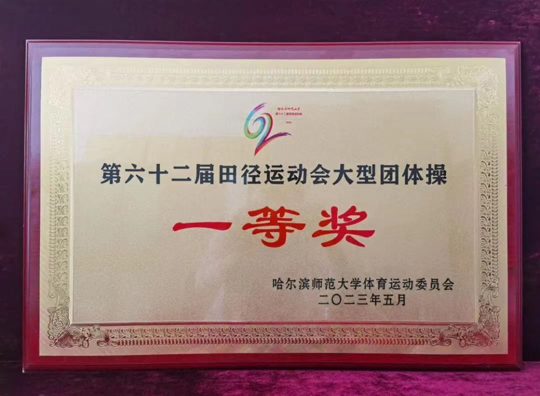 第62届田径运动会中进行的《我爱哈师大》大型团体操表演荣获一等奖。