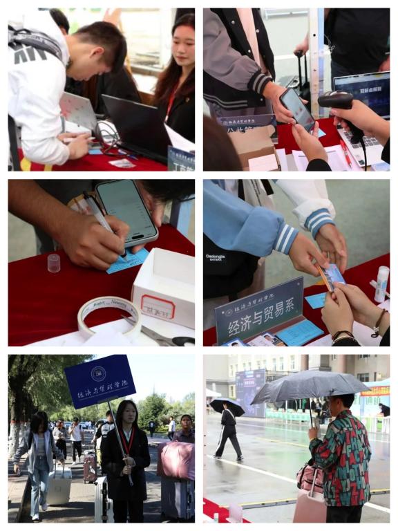 烈日当空,秋高气爽。为确保迎新工作顺利有序开展,工作人员各司其职,挥汗如雨,在各处都能看到他们忙碌的身影。正是有这些工作人员的付出,才有了迎新工作的顺利进行。每一个细碎而闪光的小细节,都是专属于经管er的独家浪漫。