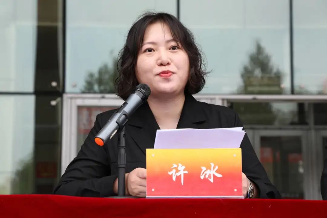 教师代表许冰讲话。许冰老师以自己奋斗求学的人生经历与同学们进行了充分交流,并建议新生坚定理想,保持热爱,脚踏实地,勤学笃行,懂得感恩,保持健康,以良好的身心健康状态面对前路遇到的困难和挑战。并预祝老师们新学期工作顺利,新生大学生活愉快,学业有成。