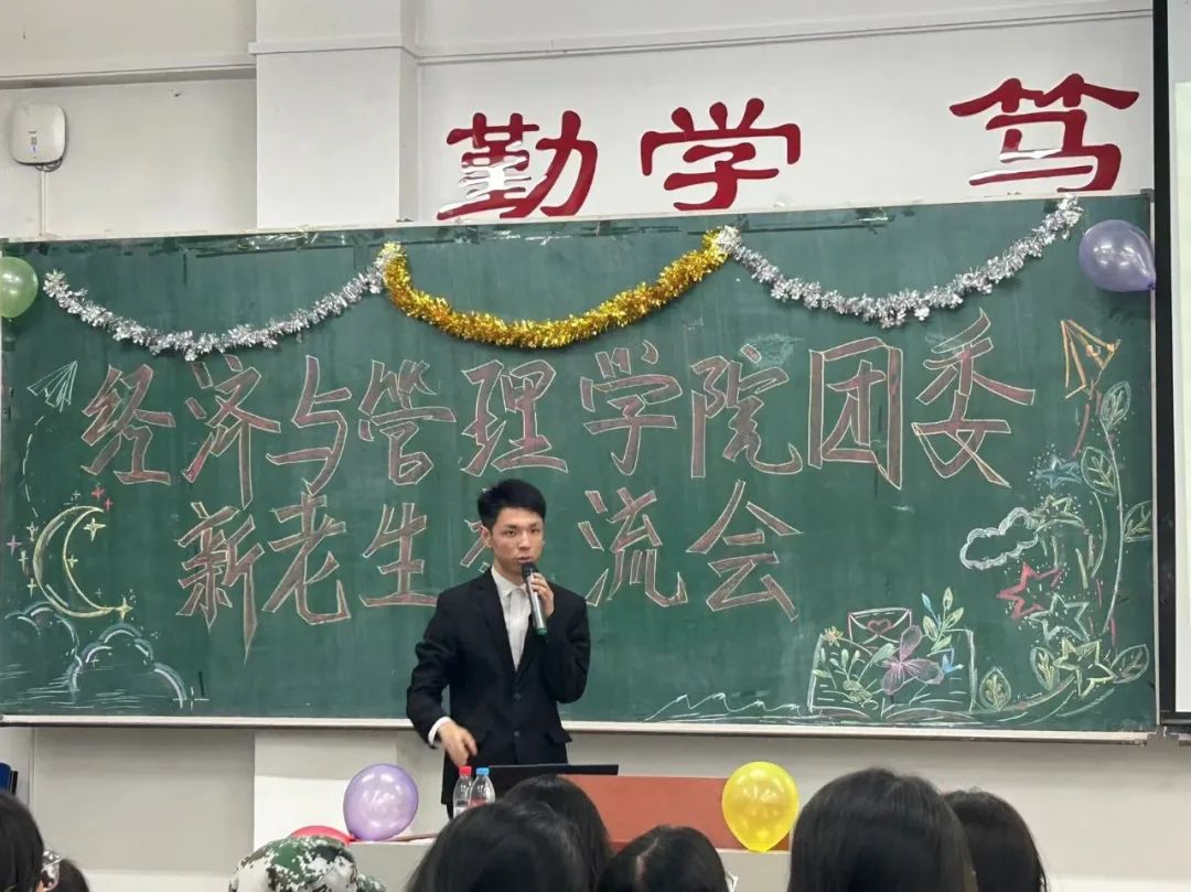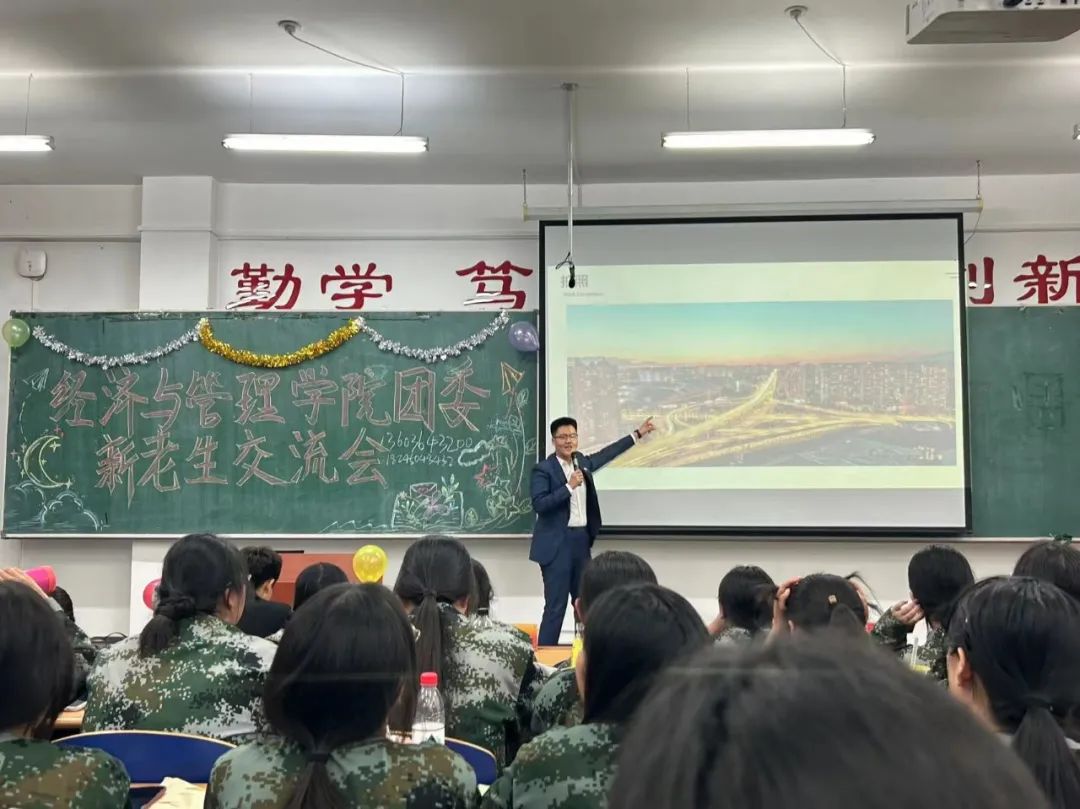 原管理学院团委学生兼职副书记李文科就学生组织和学生工作部分答疑解惑。他结合自身学生工作经历,向新同学们介绍了各个学生组织以及组织之间的分工合作,希望大家能在学生工作中造就更优秀的自己。