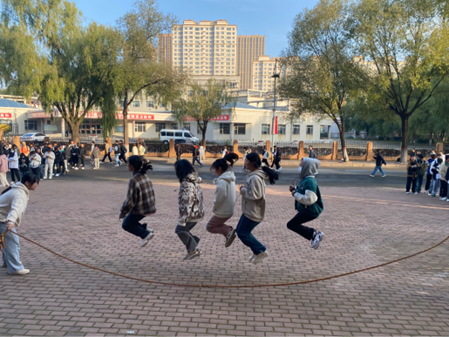 跳绳运动促进同学们心肺功能的提高,培养同学们良好的意志品质,同时增强团结协作的精神。