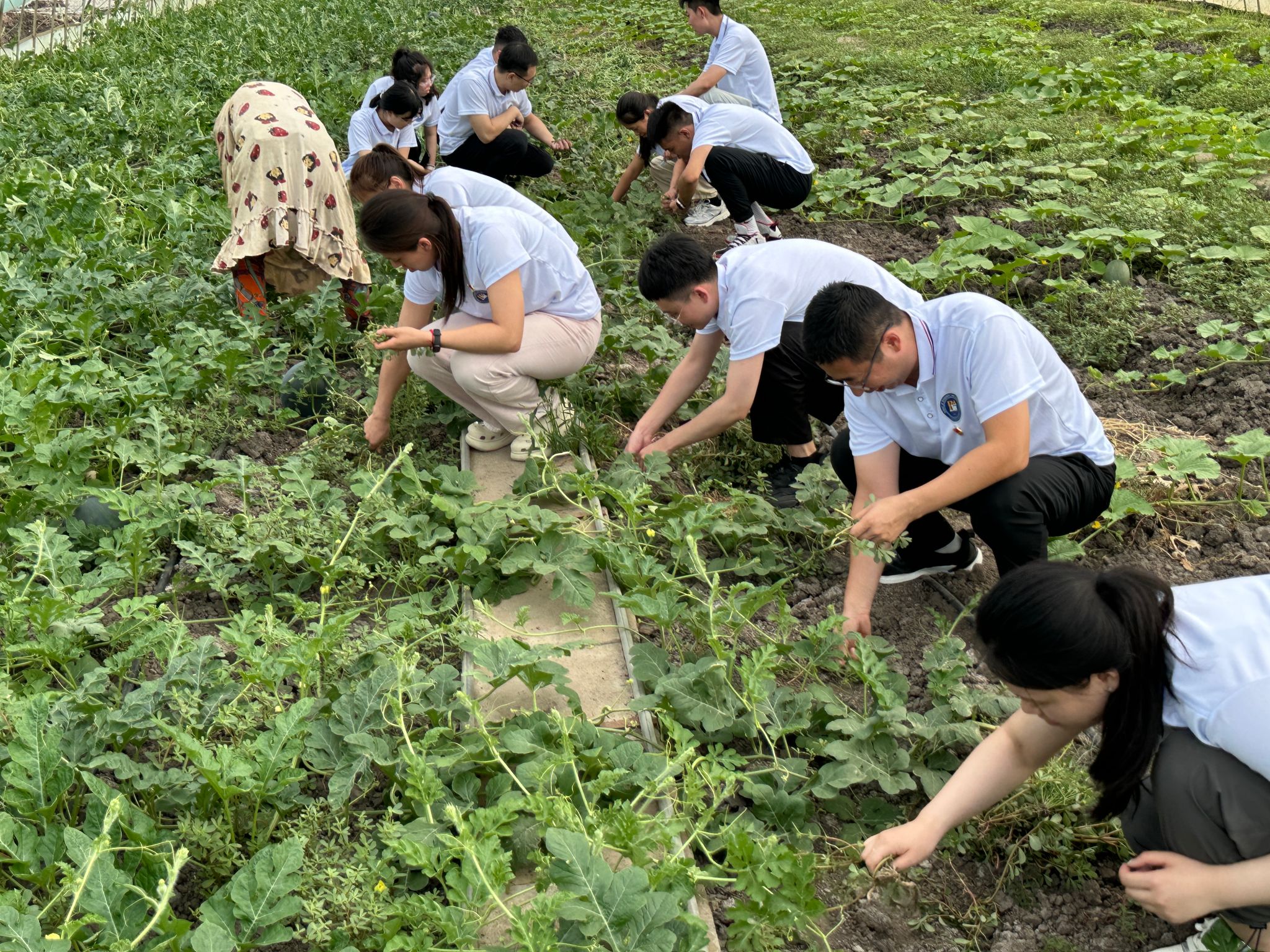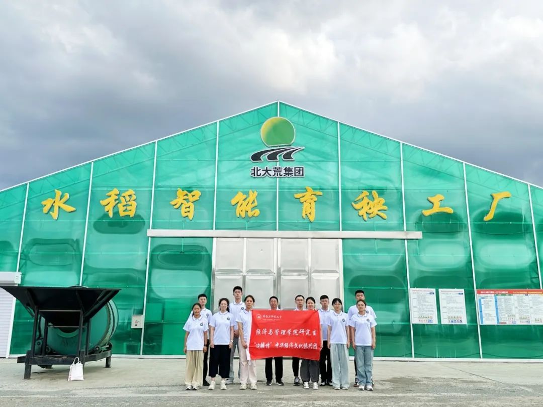 调研第二站,队员们来到庆丰农场现代农业产业园,在大棚内向农户详细了解所种西瓜的品种特性、产量、销售渠道等信息,并帮助农户拔除杂草。除传统大棚外,队员们还调研了北大荒集团下的水稻智能育秧工厂,听取负责人详细讲述现代农业技术如何改变农作育种,提高生产效率。