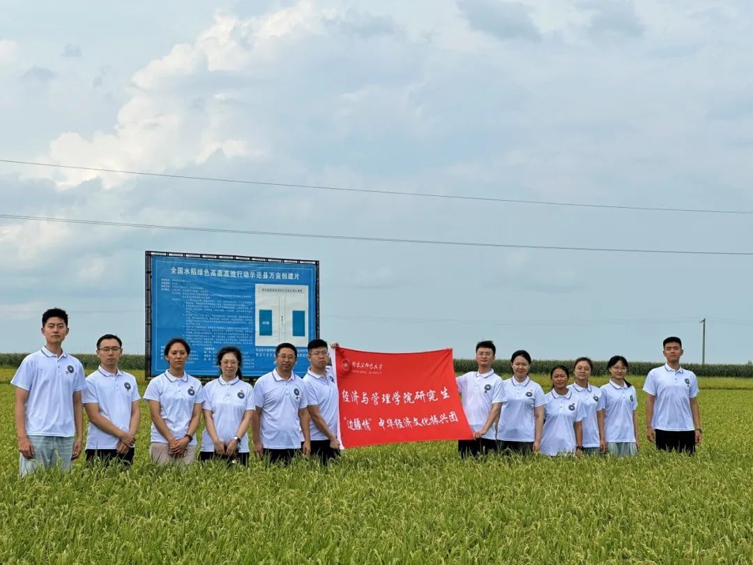 研究生“边疆情”中华经济文化振兴团,先后前往虎头镇全国绿色食品原料(水稻)标准化生产基地和庆丰农场现代农业产业园进行实地调研。