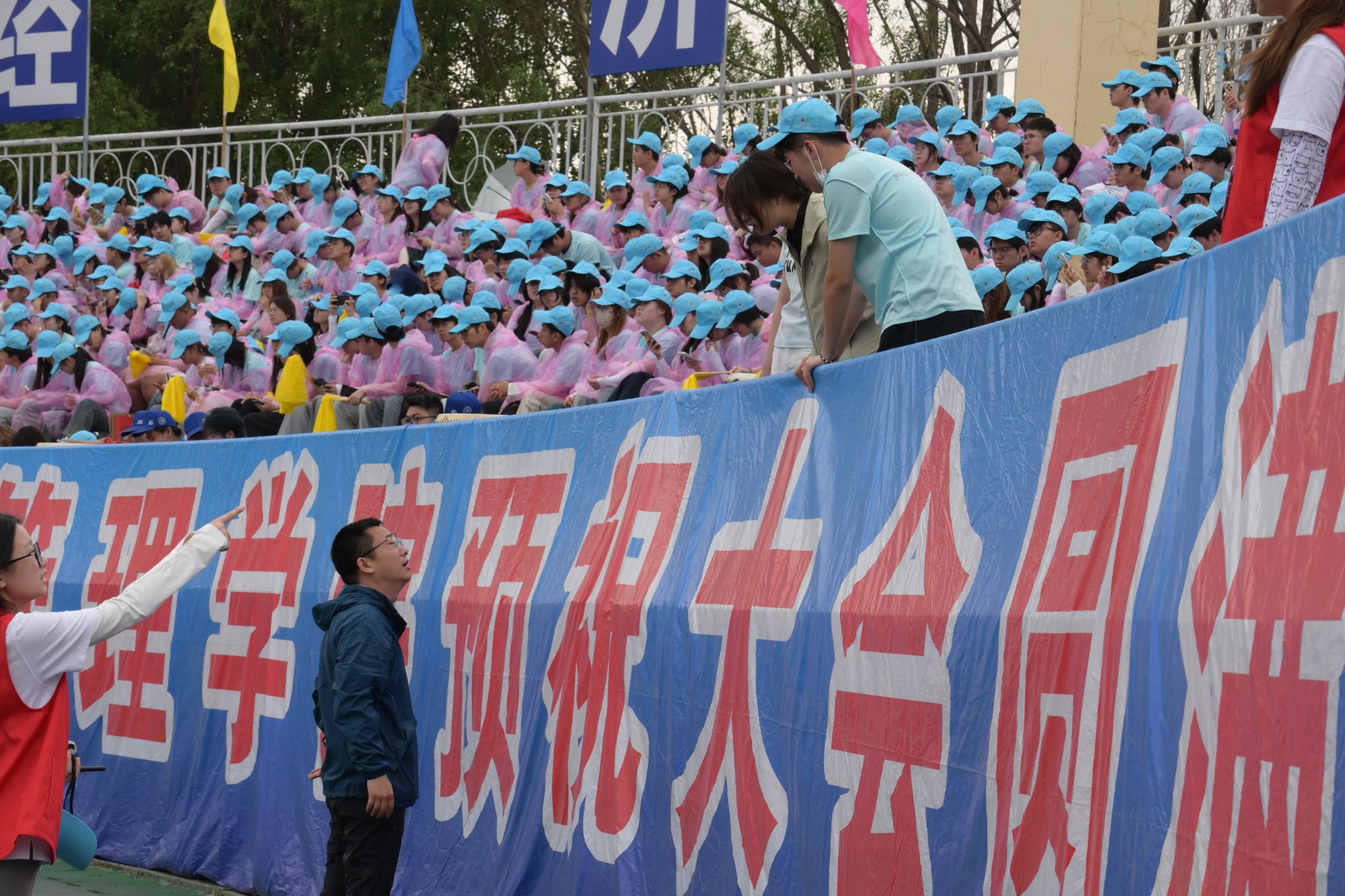 幕后的无名英雄,他们目光专注,调度有条不紊;脚步匆匆,奔走于赛场各处。他们像精密的齿轮,默默推动着整个运动会的运转。从场地布置到赛事服务,从秩序维护到后勤保障,处处都能看到他们忙碌的身影。他们用行动诠释着责任与担当,用奉献书写着青春的价值。