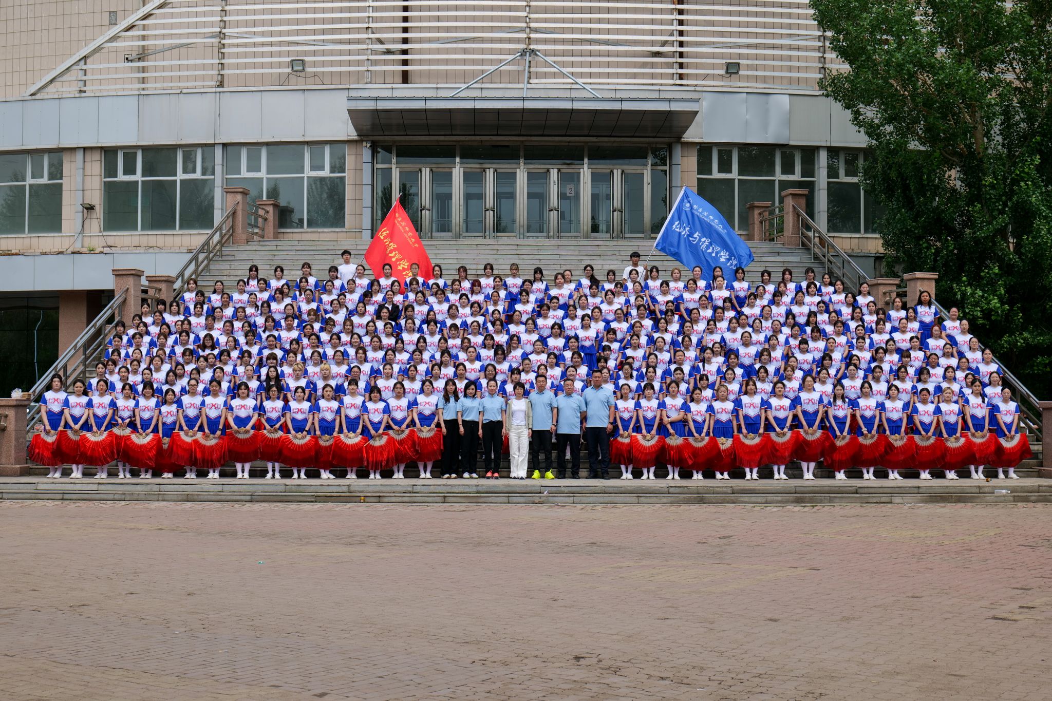 以整齐为韵,以默契为律。当音乐响起,三百名学子如花般绽放,看那整齐划一的步伐,如春风拂过麦浪般流畅自然;观那刚柔并济的动作,似游龙戏凤般行云流水;赏那变幻莫测的队形,若星河璀璨般美不胜收,她们舞出了经管学子最美的风采。