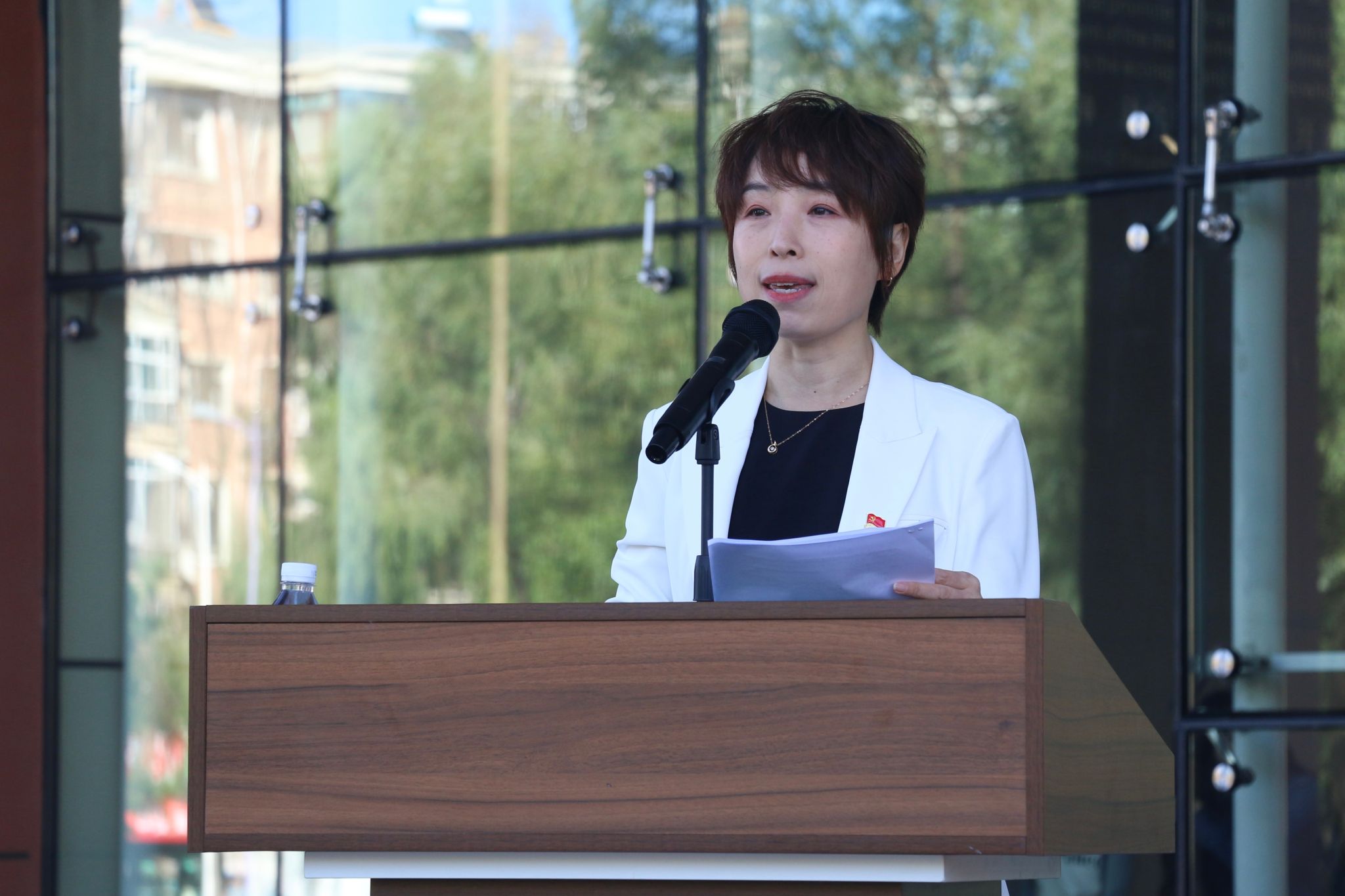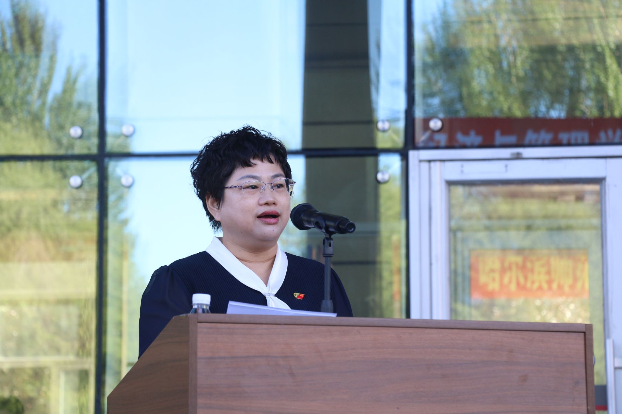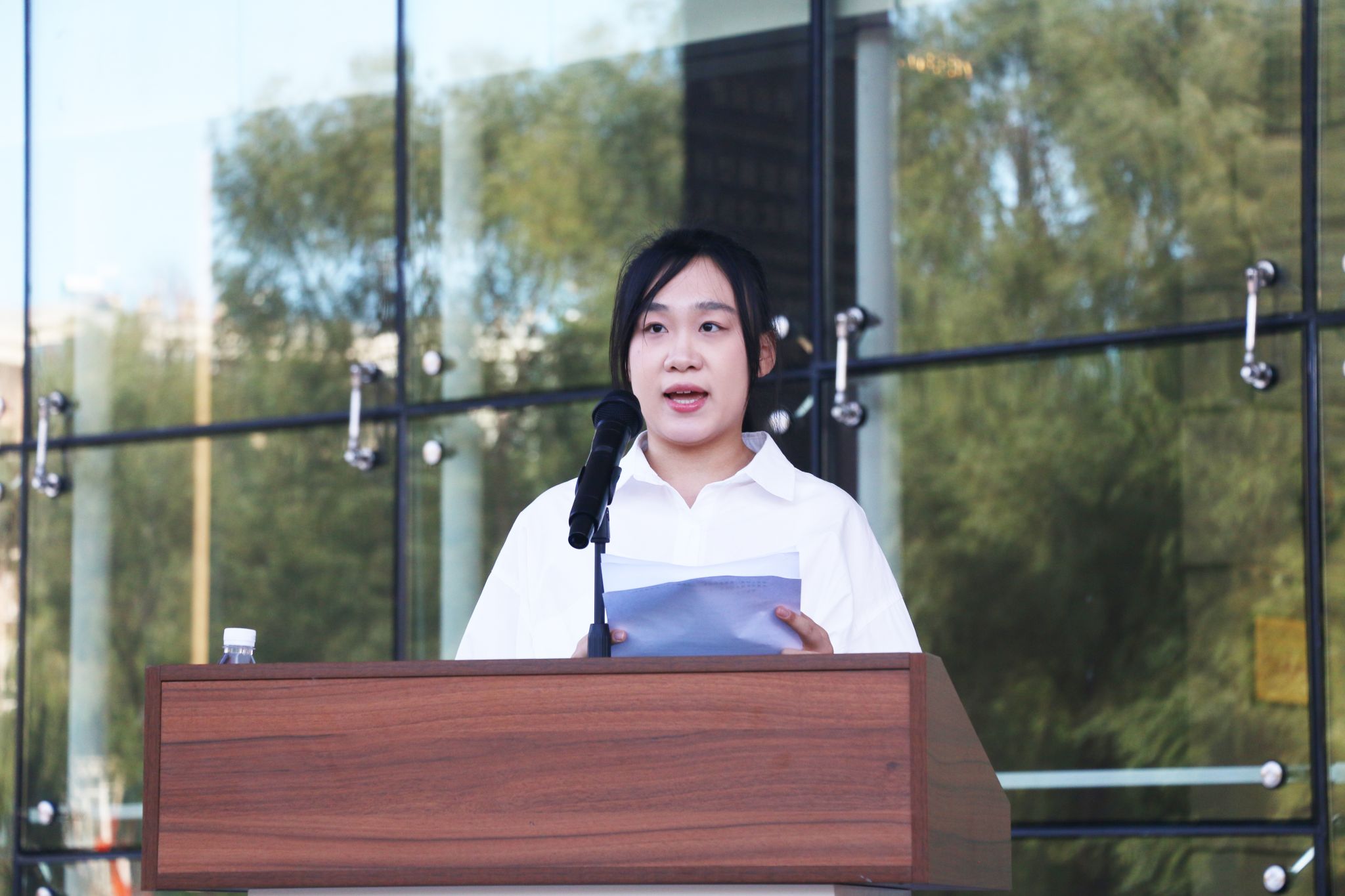 在校本科生代表、2023级劳动与社会保障专业苏文佳发言。她表示,大学不是高中的延续,更不是安逸的港湾。它是一个探索的起点,一个成长的熔炉。愿同学们以哈师大小说狂人