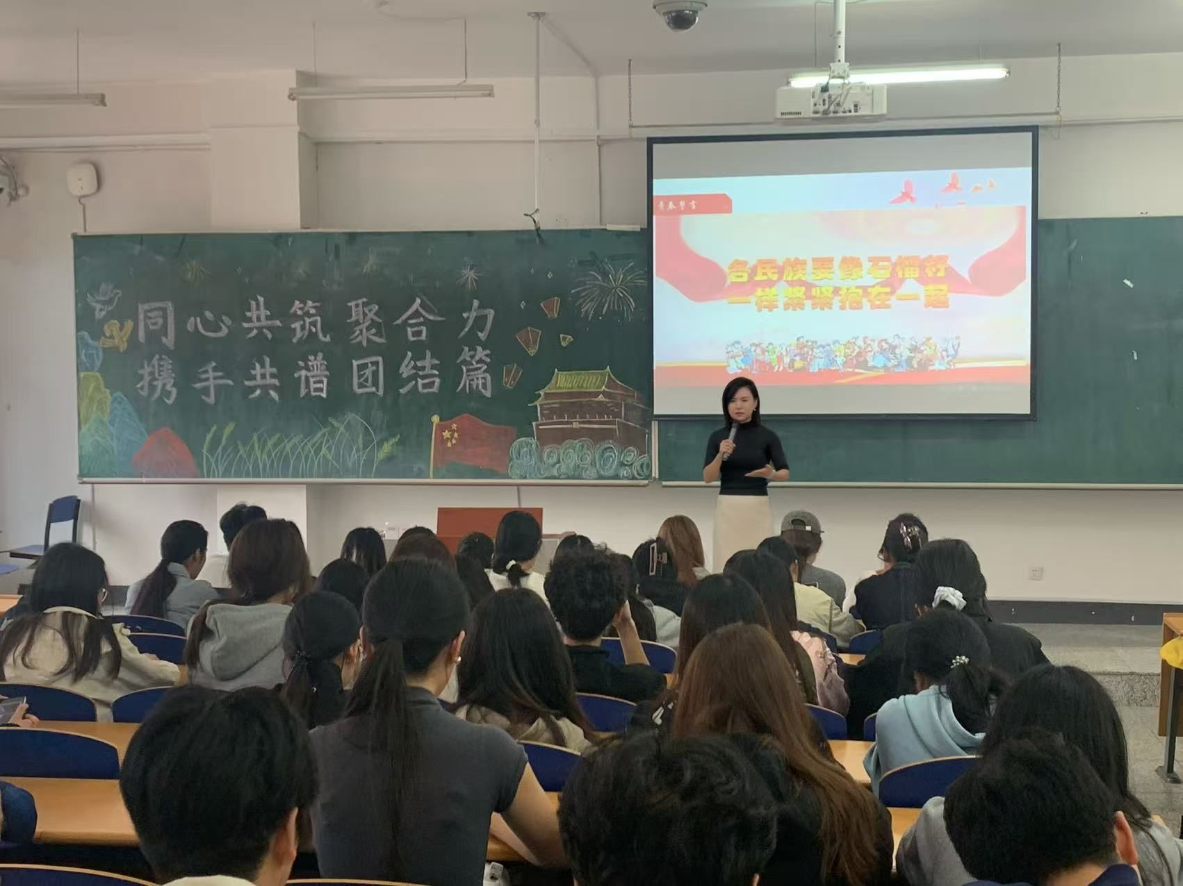 活动伊始,陈凤从历史、文化与现实三个维度,阐释了中华民族共同体的深刻内涵。她指出,中华民族共同体是超越地域与民族差异的精神纽带,是建立在共同历史记忆、文化传承与价值认同之上的命运共同体,其核心在于休戚与共、荣辱与共、命运与共。她鼓励同学们把这种共同体意识内化于心、外化于行,在学习与生活中相互支持、携手前行。