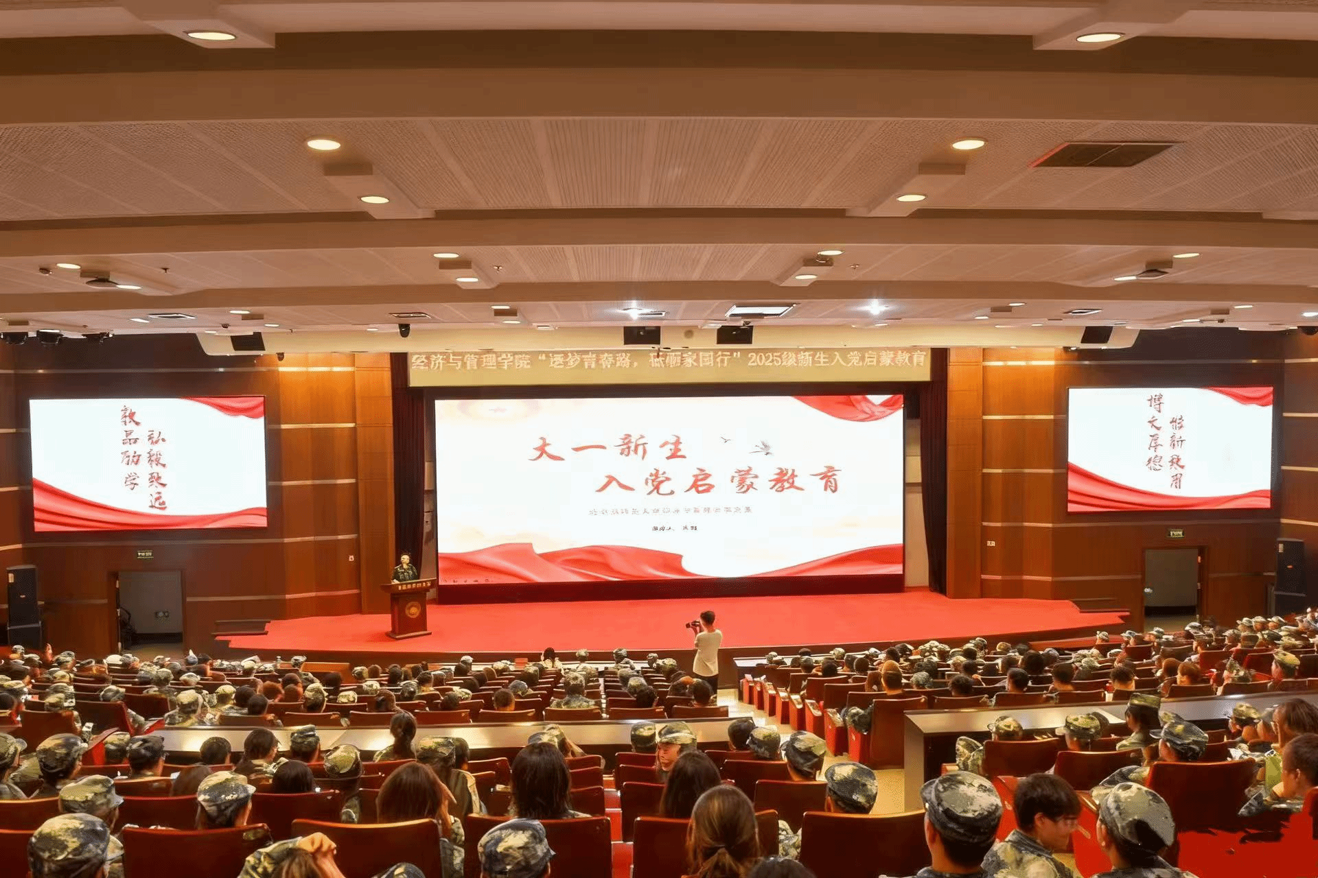 于9月17日18:30在科学会堂开展入党启蒙教育讲座。讲座由学院副处级组织员毕伟老师主讲,新生辅导员佟瑶老师主持,全体2025级新生参会。