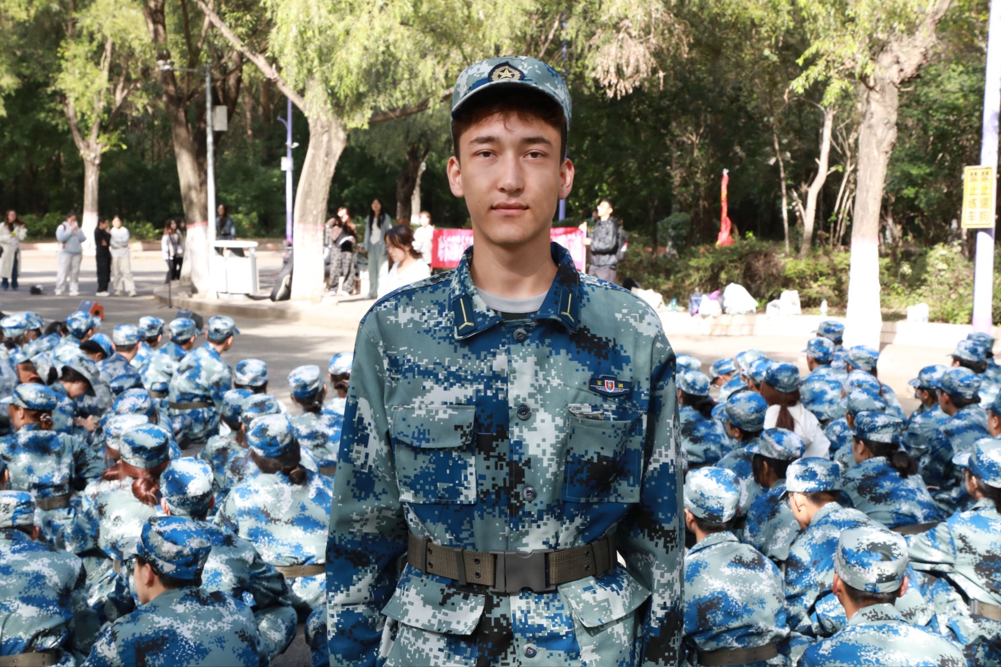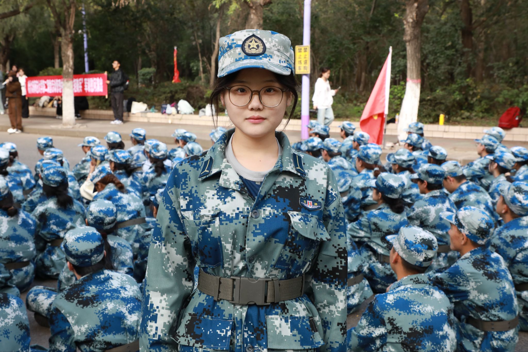 迷彩服的纹路里,藏着我与大学的初遇,也镌刻着下一场关于意志与协作的成长修行。站军姿时,阳光不是烈日,而是丈量耐力的标尺。汗水浸透衣料的重量、双腿从酸胀到麻木的痛感,都在叩问“放弃”与“坚持”的边界。当教官那句“稳住,再撑三十秒”成为精神锚点,我才懂得,所谓毅力,是在生理极限的边缘,用意念为自己筑起一道不崩塌的防线。齐步走的训练则是一场无声的对话。从最初各自为战的凌乱步伐,到后来手臂摆动幅度分毫不差、脚步声汇成同一频率,我们在反复磨合中读懂:集体的力量从不是个体的简单叠加,而是每个人主动收敛起“自我”的棱角,以默契为纽带,将零散的步伐织成整齐的方阵。军训落幕,脱下的是迷彩服,装进行囊的是刻入心底的自律与共情。它教会我的不仅是标准的军姿,更是如何在集体中找到自我坐标,用坚持与协作,为即将展开的大学生活,写下沉稳的开篇。