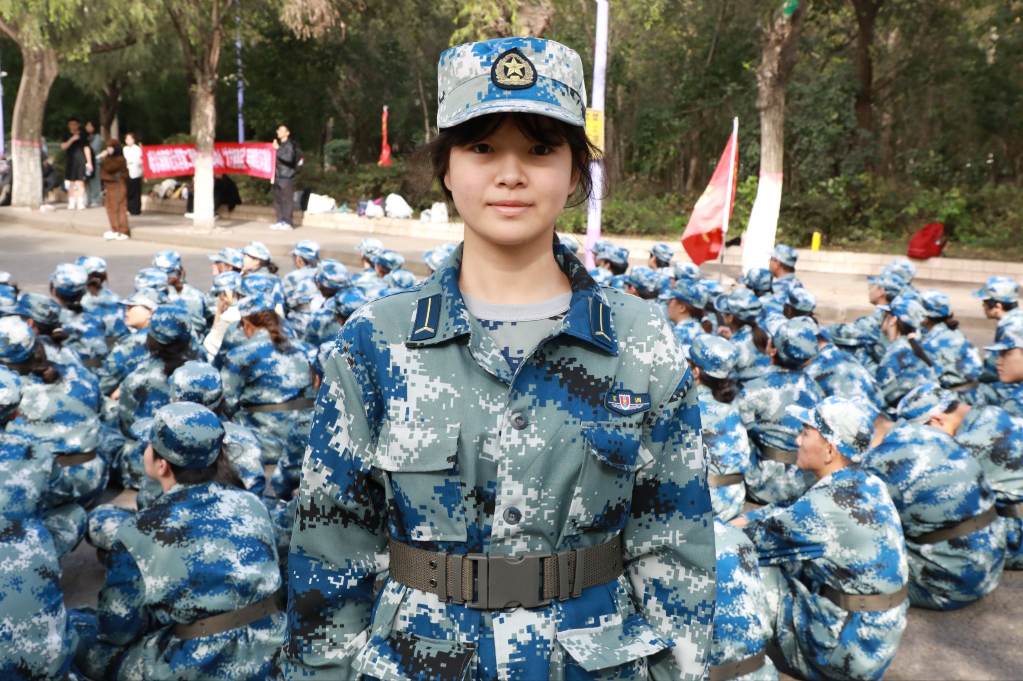 秋风送爽,丹桂飘香。我们迎来了大学生活的第一课——军训。怀揣着些许期待与忐忑,我穿上了这身迷彩服,从此,汗水与欢笑交织的篇章正式开启。短短11天,我从一个怕苦怕累的学生,变成了能咬牙坚持的“战士”;从只顾自己,学会了时刻看齐排面、顾及集体。我懂得了“令行禁止”的纪律,明白了“坚持就是胜利”的真谛。军训磨砺了的不仅是我的身体,更是我的精神。它让我看到了中国军人的缩影,理解了那份坚毅与担当从何而来。