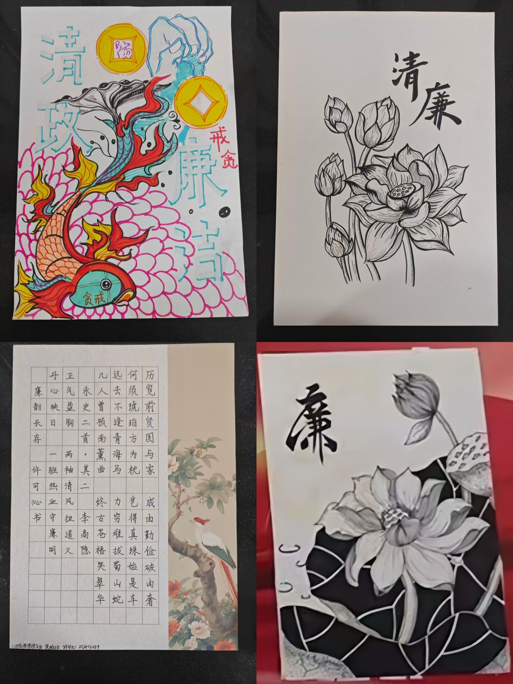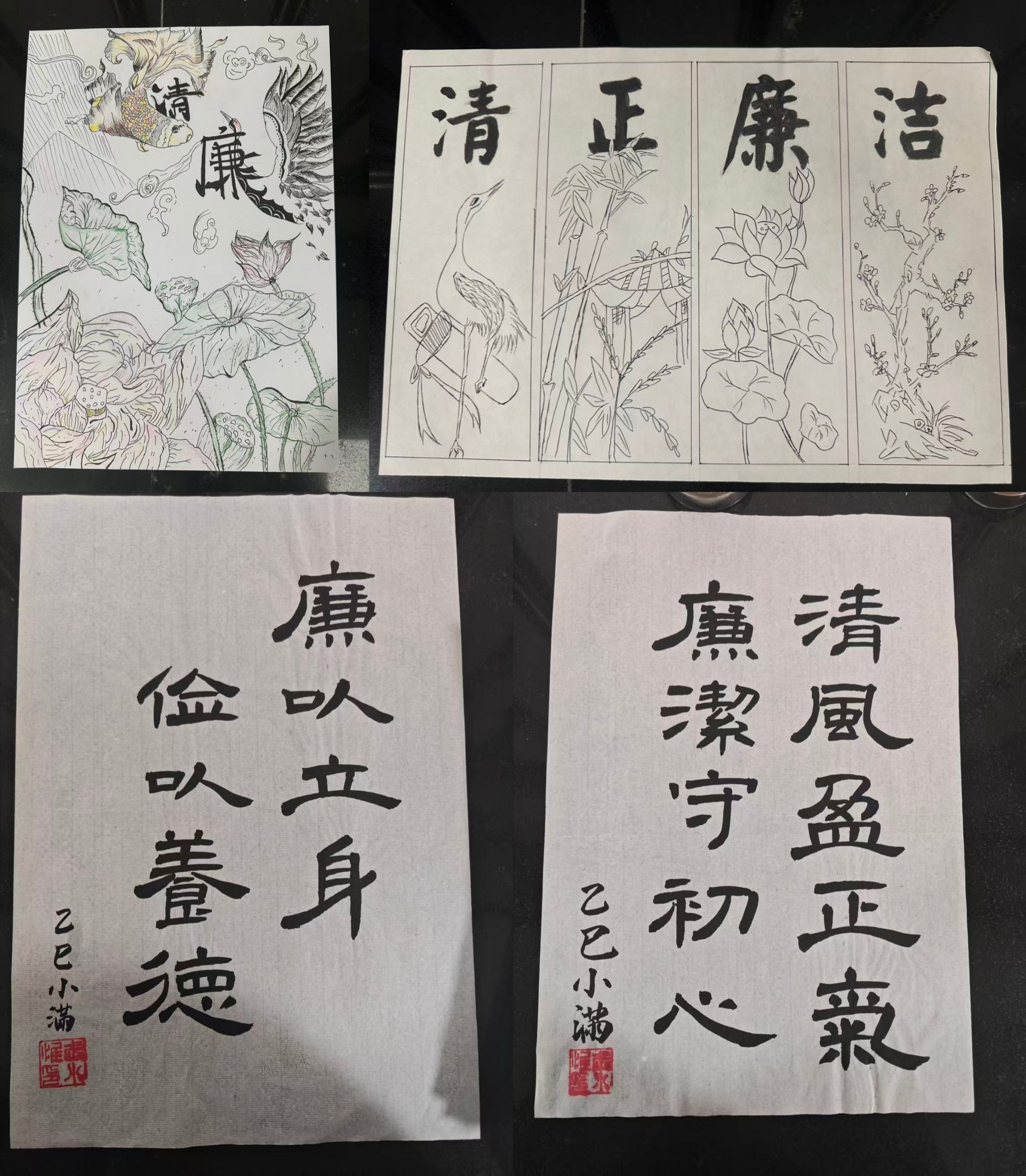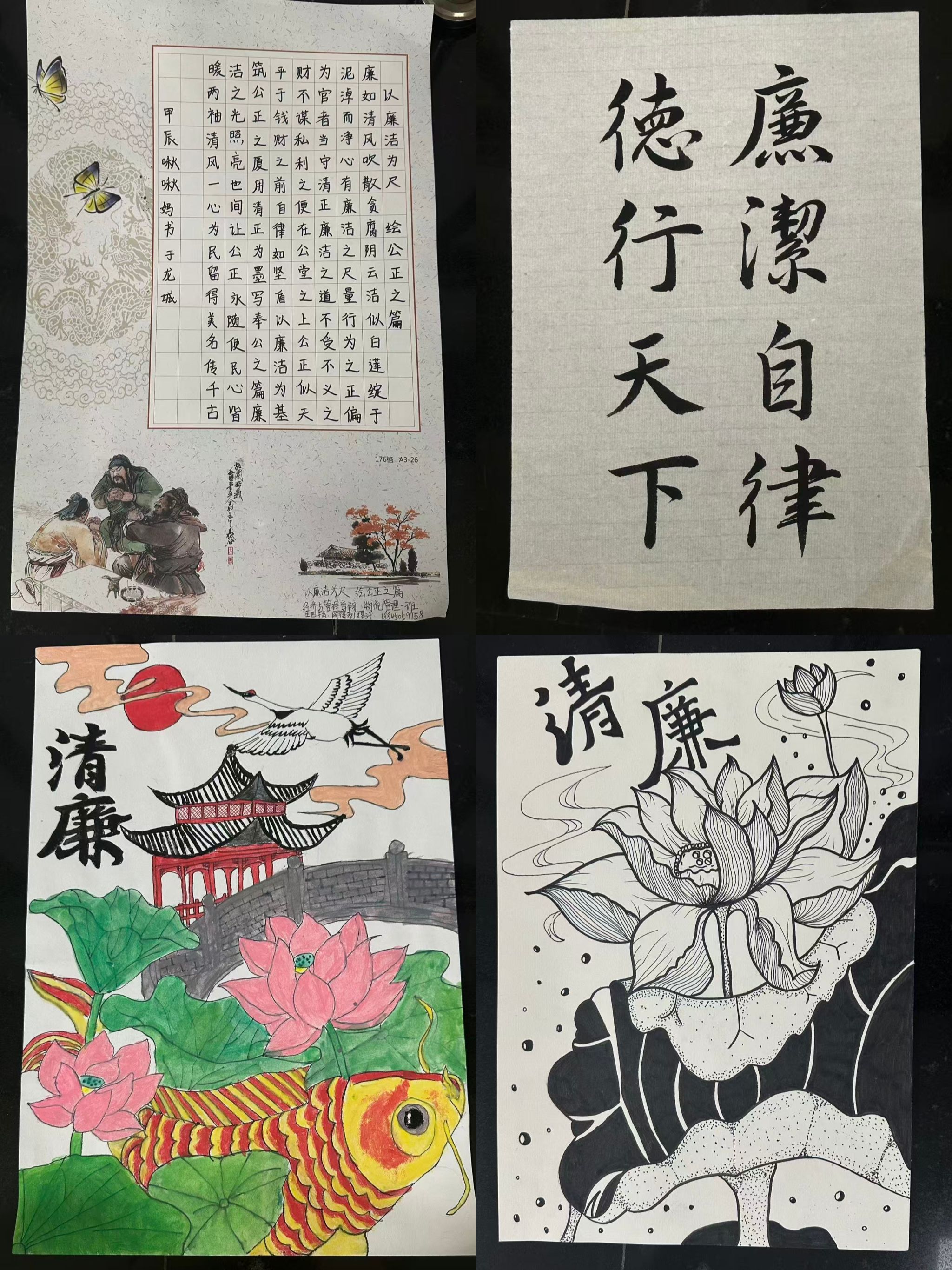 全院学生以青春视角与创作热情,通过书画等多种形式,将廉洁理念与个人感悟巧妙融合。大家或以细腻笔触讲述校园里的廉洁小事,或以深刻思考剖析未来职场的守正初心,有的挥毫泼墨书写廉洁箴言,有的则勾勒丹青描绘清风正气。这些作品将对廉洁的尊崇与追求融入创作细节,字里行间满是真挚感悟,充分展现了当代青年崇廉尚洁的精神风貌与责任担当。