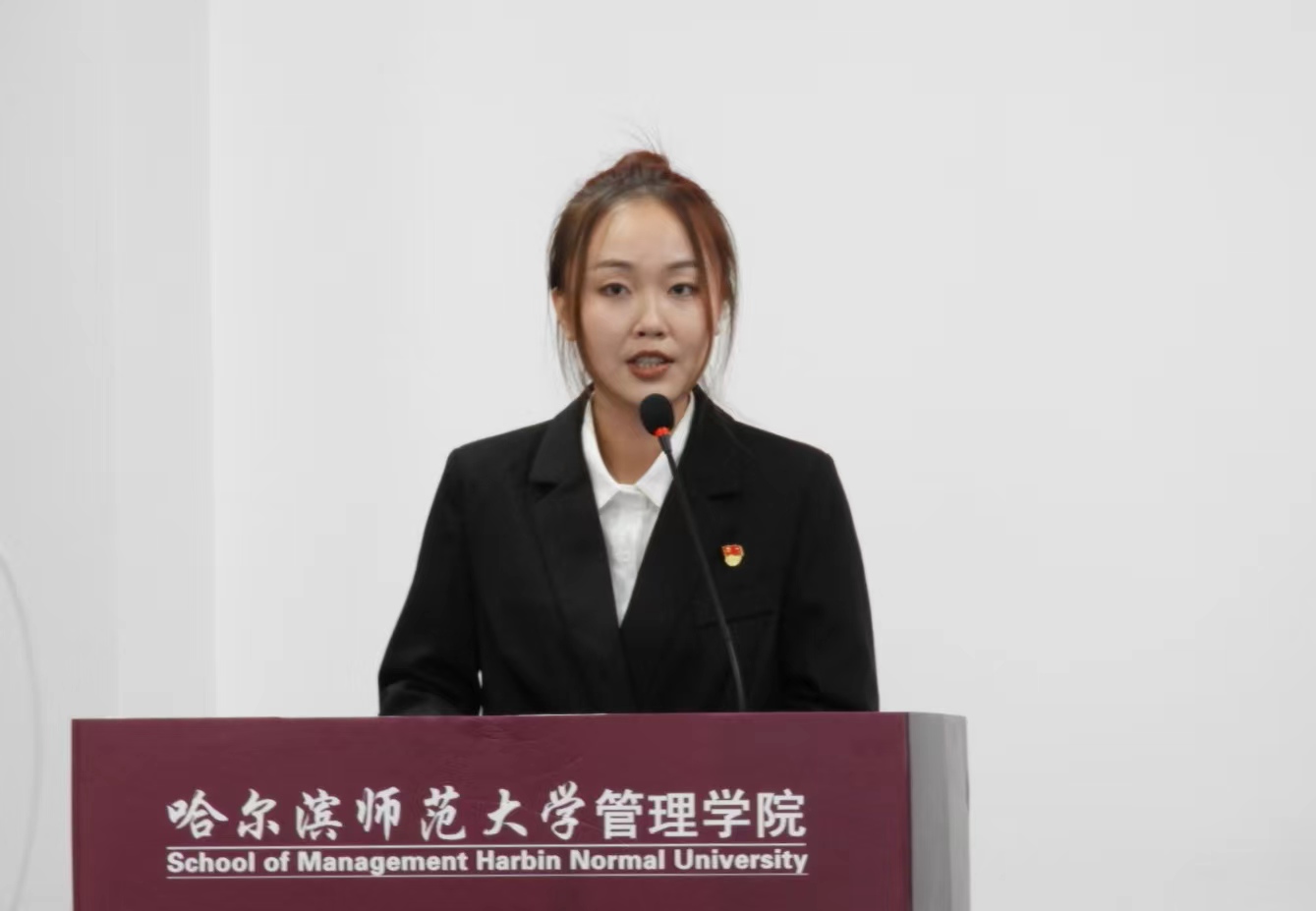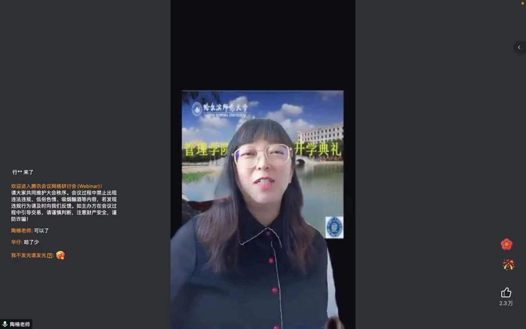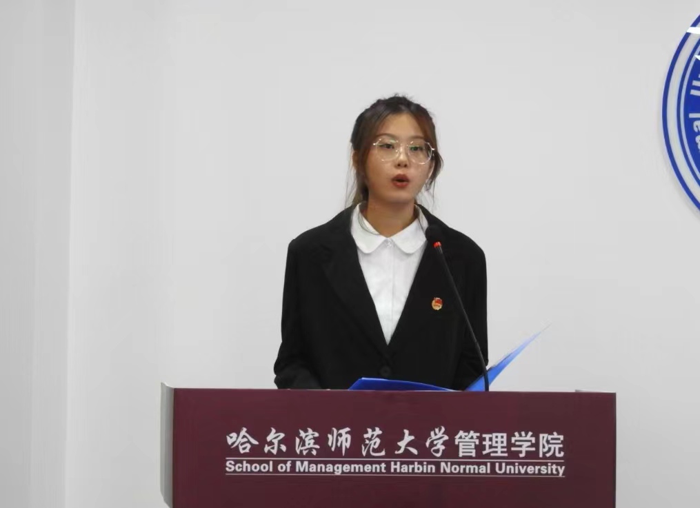 本科新生代表、人力资源管理专业2022级本科生杨思莹在发言中号召同学们牢记习近平总书记的殷切嘱托,与时代同行,唱响青春之歌。秉持哈师大“敦品励学,弘毅致远”的校训精神,践行管理学院“博文厚德,惟新致用”的院训精神,努力学习,不负青春,成为“有理想、有本领、有担当、有品德”的卓越师大“管理人”。