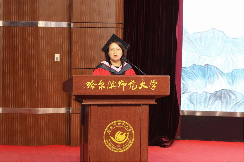 教师代表郭晓勋教授为全体毕业生致辞。郭老师代表经济管理学院全体教师,向2024 届全体毕业生同学表示热烈的祝贺!同时也对毕业生们提出几点嘱托:第一,要充满自信,希望大家在困难中锤炼人生厚度,在平凡中追求内在卓越,以“自信人生二百年,会当水击三千里”的状态和豪情迎接前方的灿烂辉煌。第二,要始终秉持“敦品励学,弘毅致远”的校训、“博文厚德,惟新致用”的院训,知行合一,在新的岗位,把思考和行动融为一体,始终保持心灵的那份强大和坚定。第三,她希望同学们能够时刻保持“千磨万击还坚劲”的坚定意志,坚守自己的理想信念,学会在逆境中寻求出路,在坎坷中放平心态,尽情施展自身才华,为社会发光发热。郭晓勋老师深情的字字句句,寄托着对全体毕业生的深情嘱托与美好祝愿。