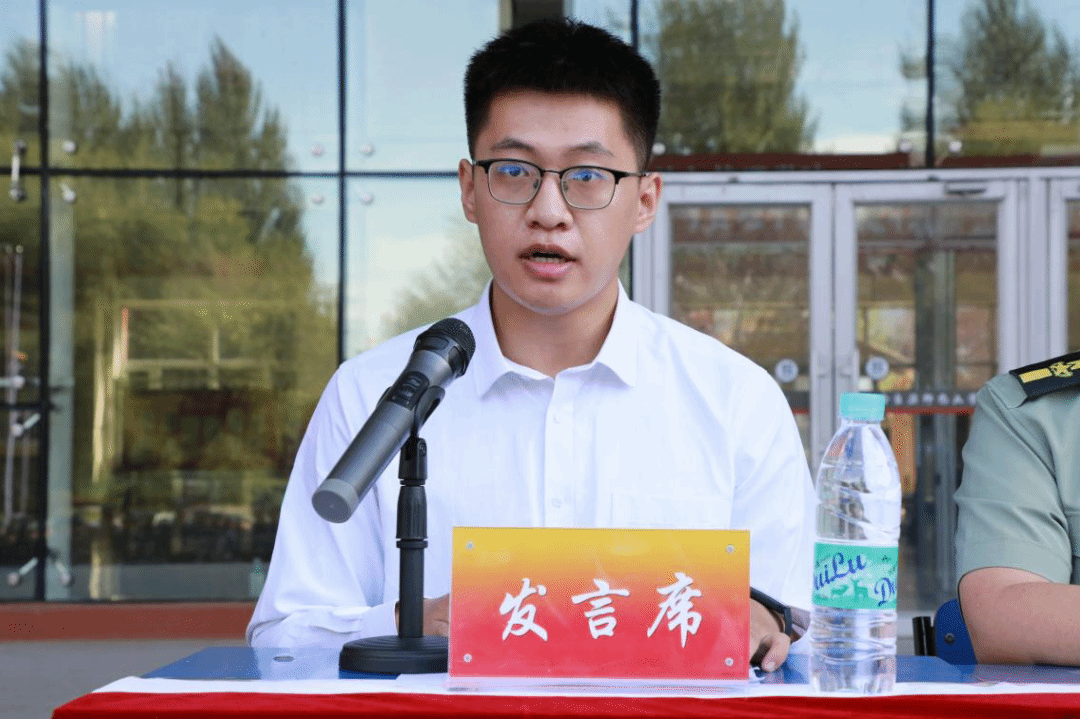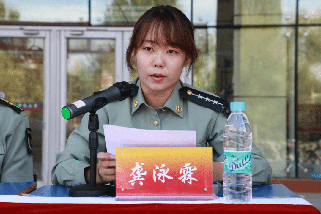 新生辅导员代表龚泳霖宣读军训任务。龚泳霖老师首先强调了军训的重要性,指出军训不仅能够锻炼学生的身体素质,更能培养团结协作、纪律严明的品质。她详细介绍了军训的时间安排、内容和要求,并提醒同学们要严格遵守军训纪律,认真完成各项训练任务。