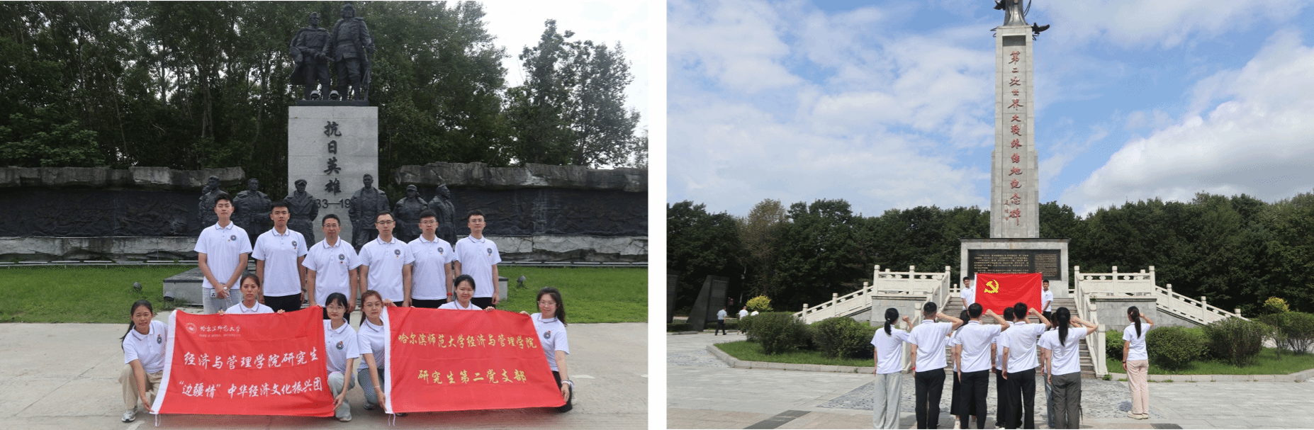 研究生“边疆情”中华经济文化振兴团前往侵华日军虎头要塞博物馆、乌苏里江的起点——292界碑、珍宝岛等地探寻红色足迹,认真聆听讲解员介绍并深入地下要塞设施进行实地探访,详细了解了这段历史背后的沉重与悲壮,并在第二次世界大战终结地纪念碑下,全员肃立齐声重温入党誓词,表达对革命先烈的崇高敬意。通过精心制作红色文旅宣传视频,利用互联网平台传承红色文化,赓续红色基因,推广虎林红色旅游文化。