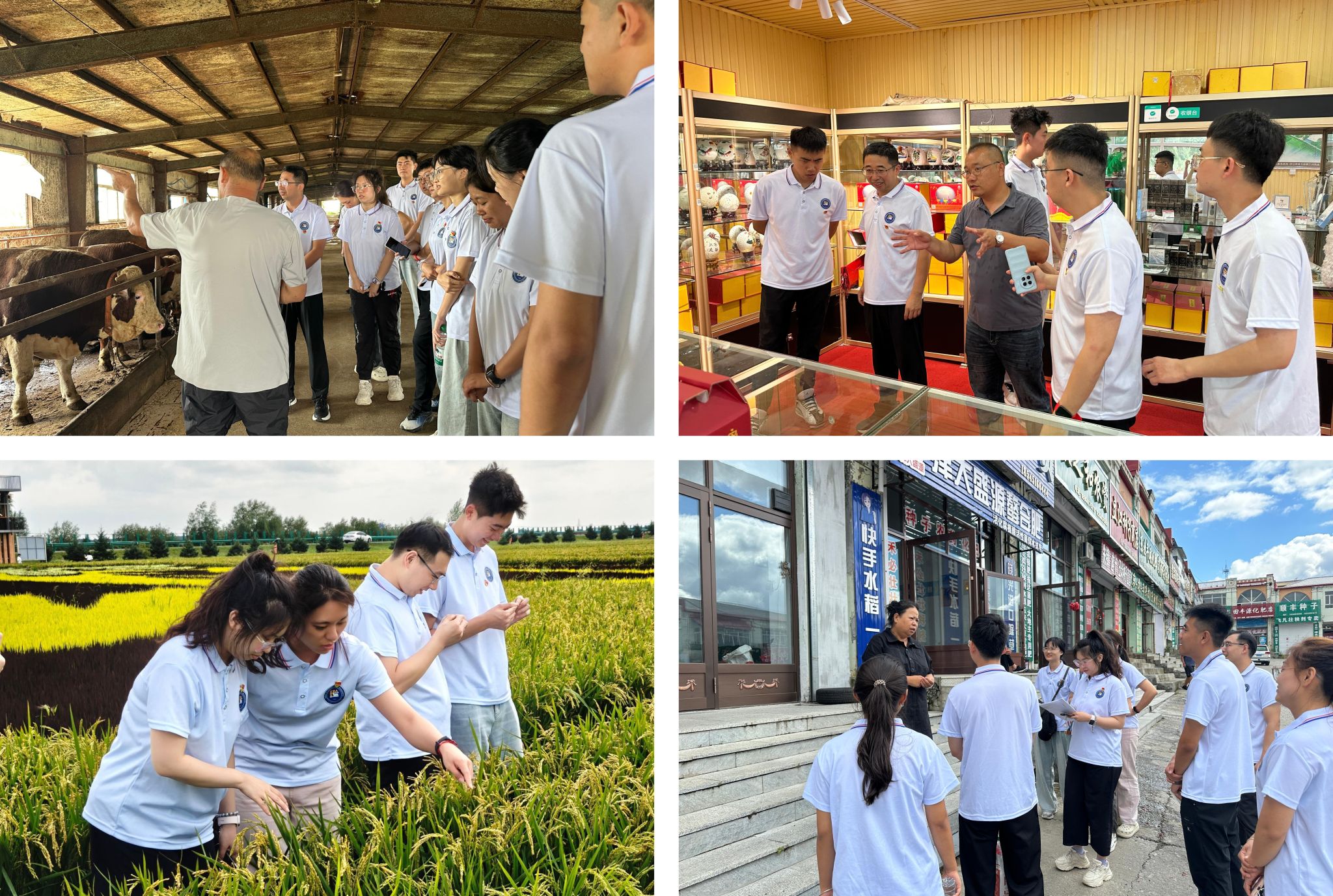 8月27—28日,团队先后走访虎林市新乐乡犇壮牛养殖专业合作社、金苑鸵鸟技术综合研发有限公司、全国绿色食品原料(水稻)标准化生产基地、庆丰农村现代农业产业园、联鑫中俄农贸市场等多地开展调研,了解产业经营现状、市场需求以及发展潜力,挖掘乡镇企业在农村经济发展的核心驱动力,探索促进产业升级,农民增收的新路径。