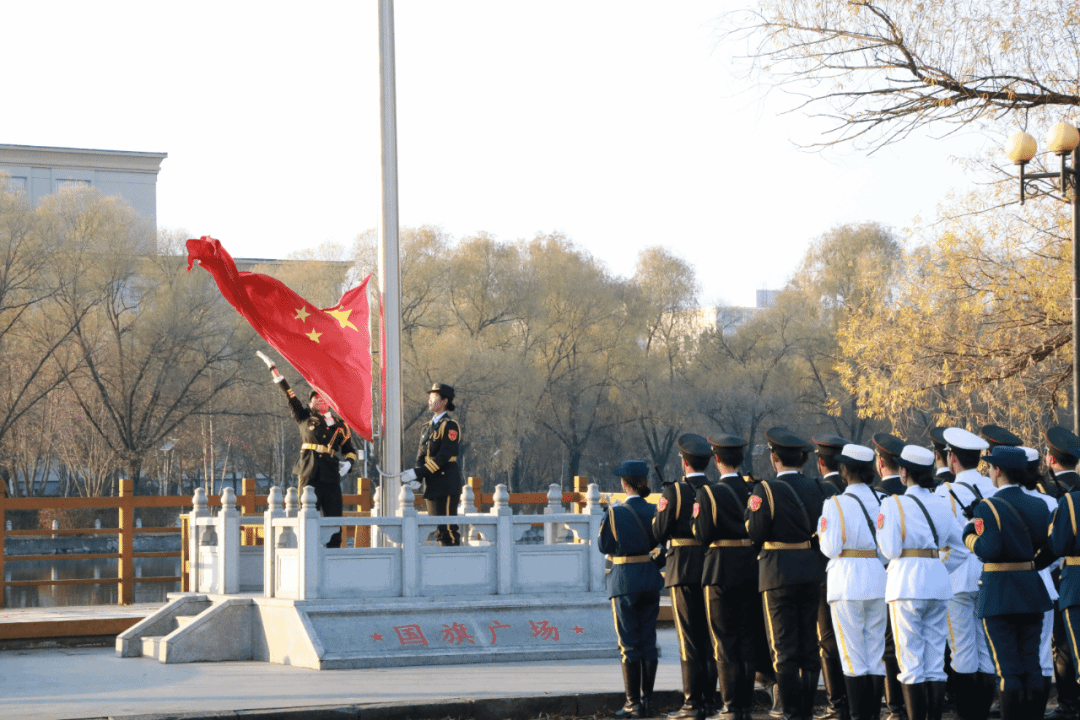 升国旗、奏唱国歌。国旗在晨曦中缓缓升起,国歌奏响。全体师生高唱国歌,声音洪亮激昂,每一句歌词都饱含深情,眼神中满是对祖国的热爱与崇敬。