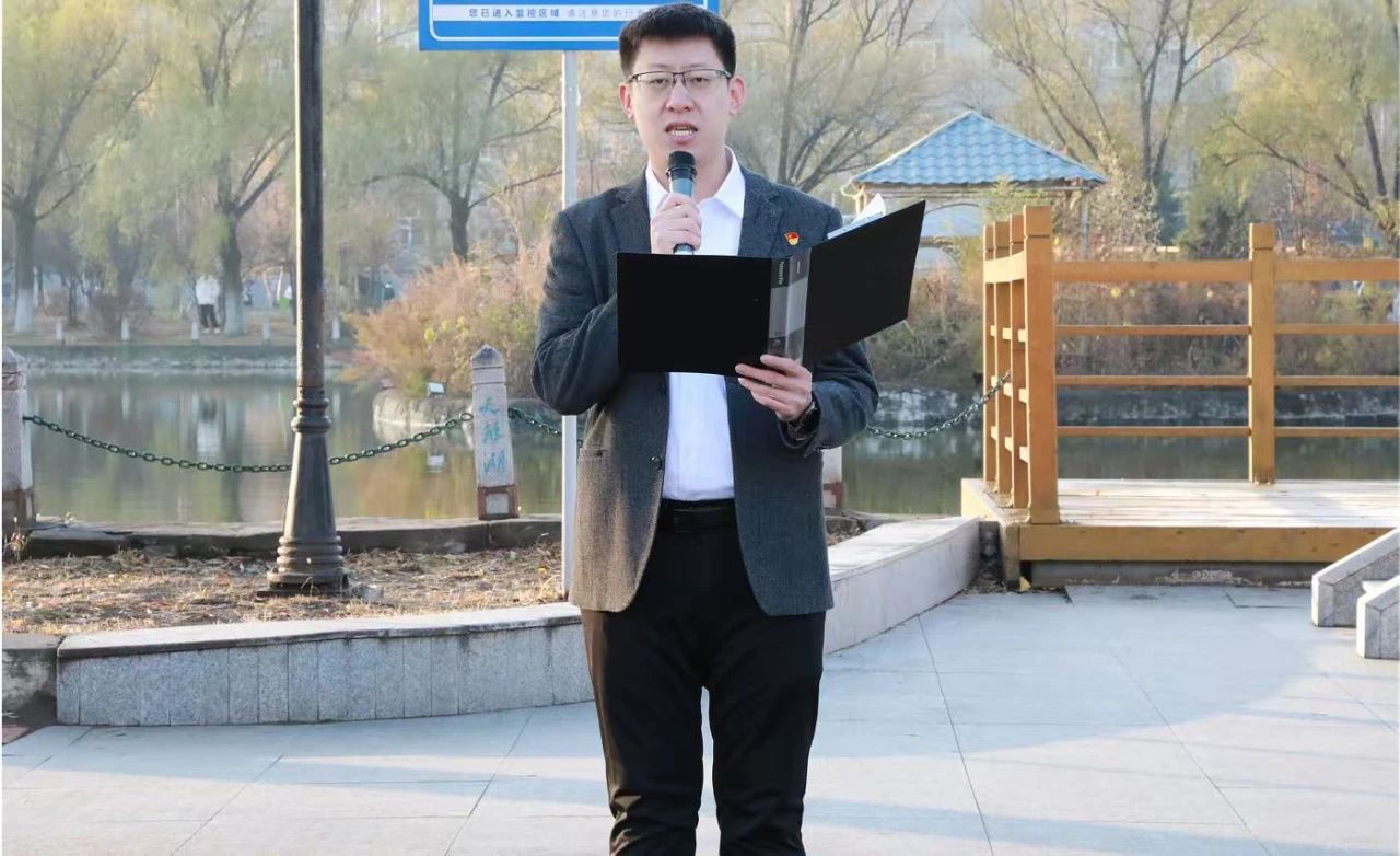 团委副书记龚泳霖老师讲话。龚泳霖老师指出,勤俭节约是中华民族的传统美德,也是我们每个人应当践行的品质。在当前社会,虽然物质条件日益丰富,但勤俭节约的精神更不能丢。作为新时代的大学生,我们要继承和发扬这一优良传统,将勤俭节约融入到学习、生活的方方面面。并从五个方面向全体师生提出倡议:树立节约意识、节约用水用电、践行光盘行动、绿色出行、爱护公共财物,引导同学们争做节俭风尚的传播者、实践者、示范者!