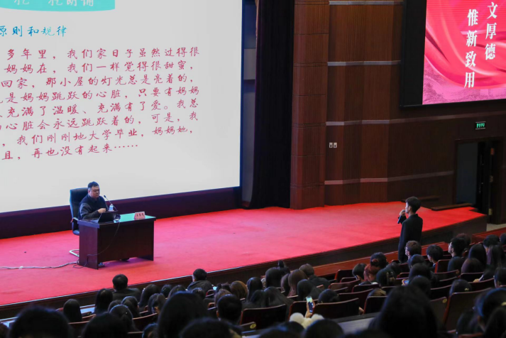 音乐学系教师王恩亮主讲,学院党委副书记翟力及600余名学生参加了本次讲座,讲座由学院双创指导教师金东旭主持。