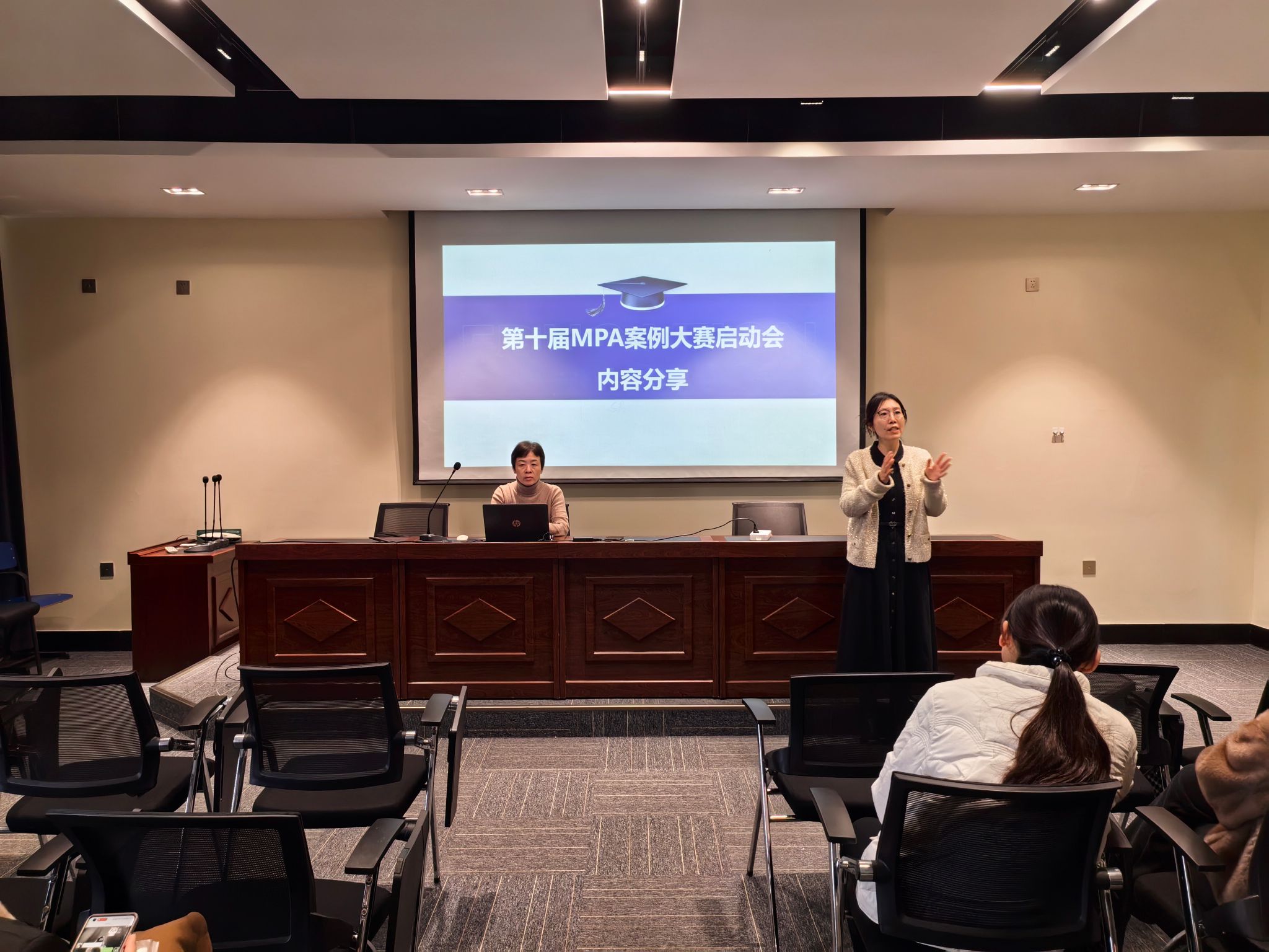 于2025年11月26日下午13:30在崇师楼B318室举办第十届中国研究生公共管理案例大赛启动讲座。本次讲座由学院副院长、MPA专业负责人祁凯教授主持,刘岩芳教授主讲,全体MPA硕士生导师及2024级、2025级MPA研究生共同参加。