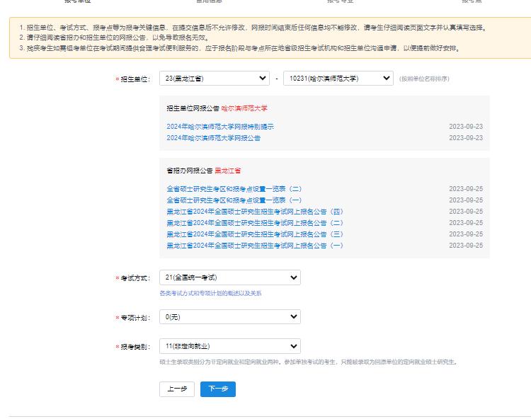 注意:报考类别:11(非定向就业)、12(定向就业)。请考生根据实际情况自主选择。缴费完成后,请打印报名信息表,并注意打印准考证时间。